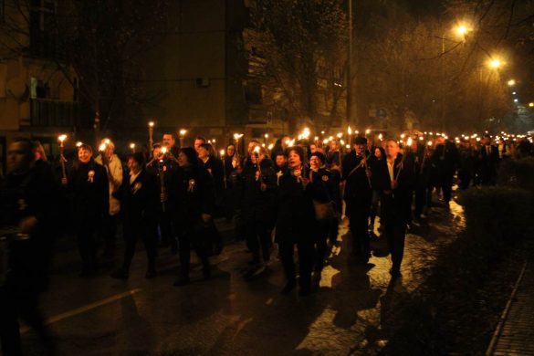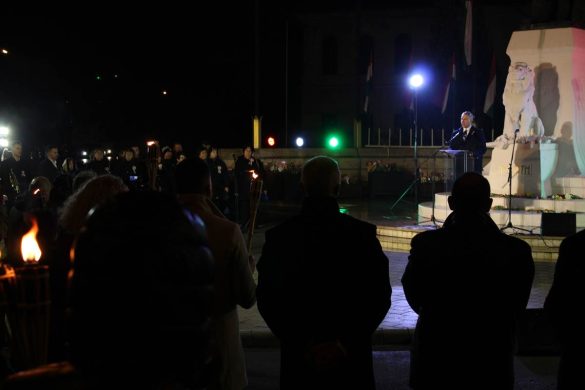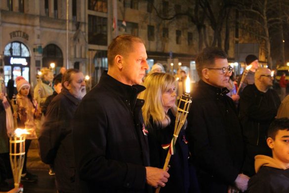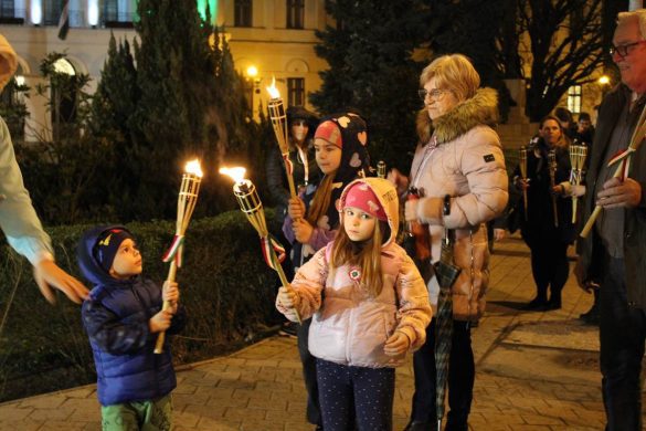 Fáklyás felvonulással emlékeztek az 1848-as forradalom és szabadságharc hőseire Makón, 2025. március 14-én. Fotók: Halmágyi Gábor