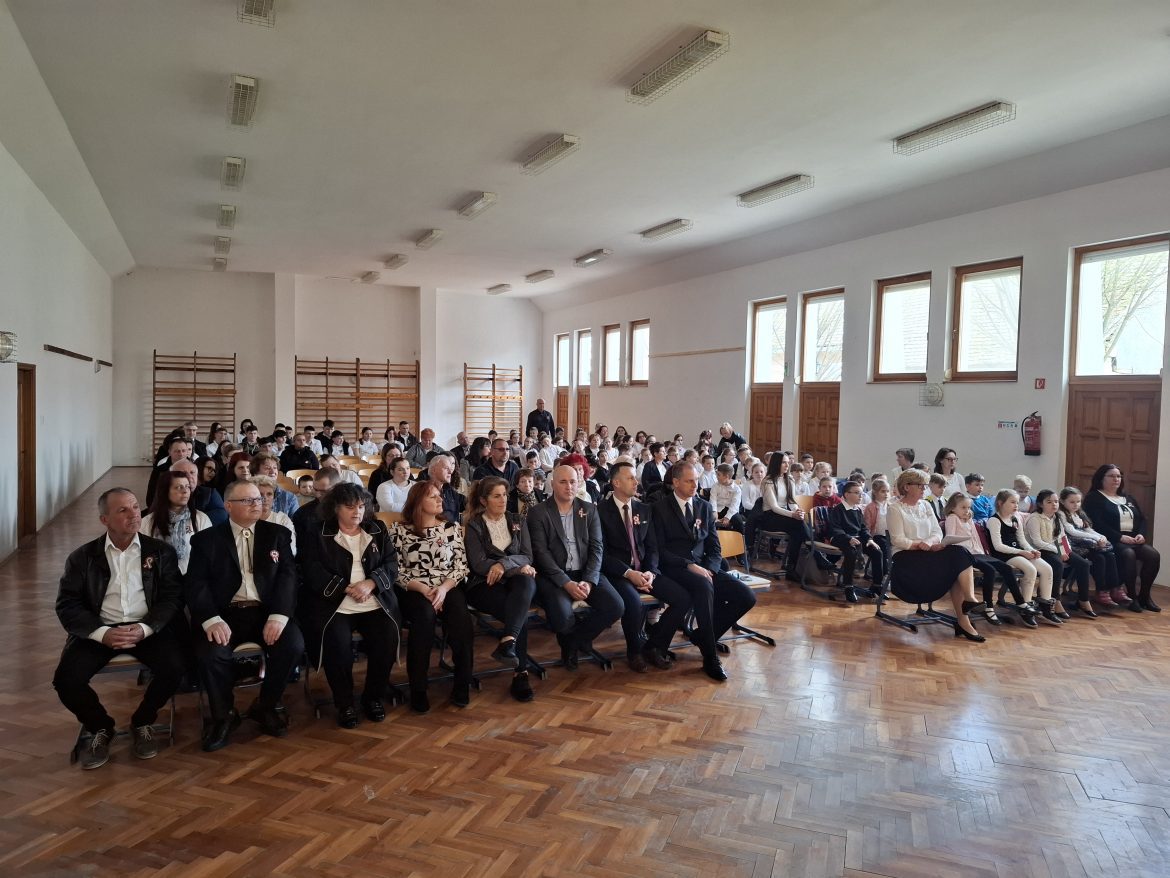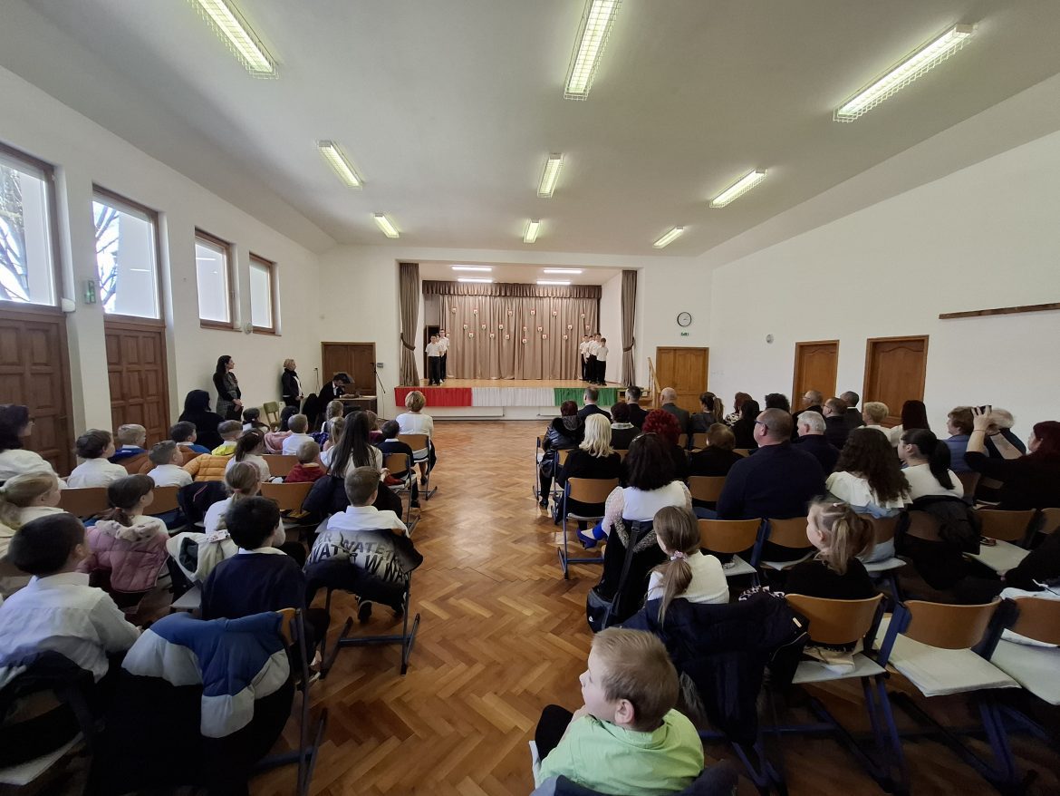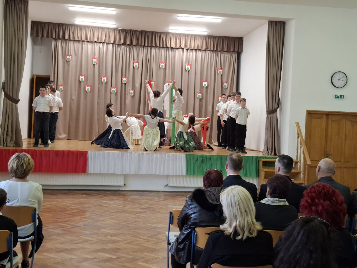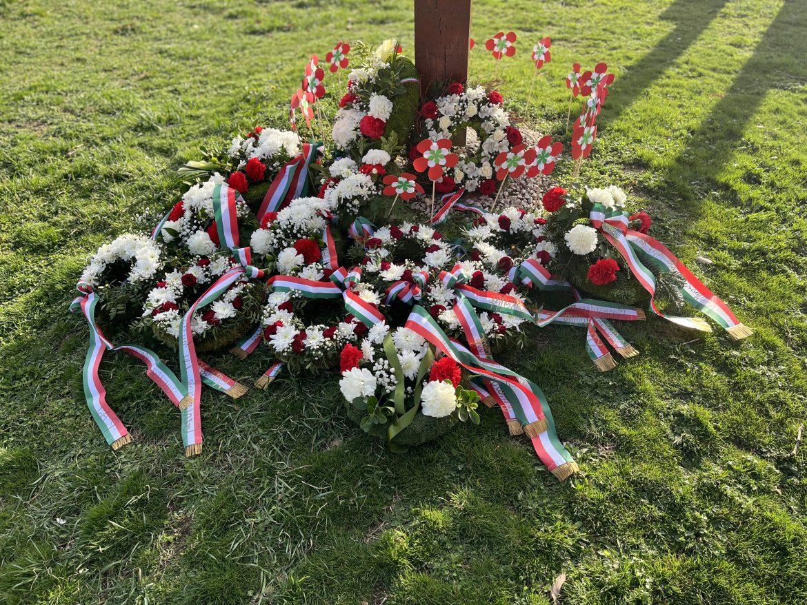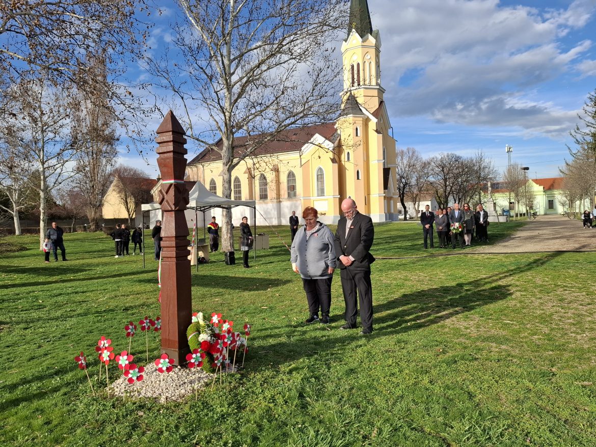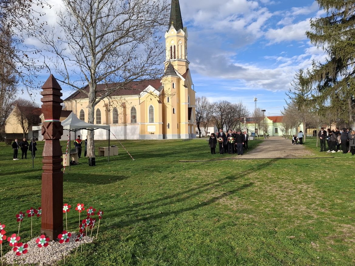 Az ünnepi műsor után a templomkert kopjafájánál hajtottak fejet a 177 évvel ezelőtti forradalom hősei előtt.