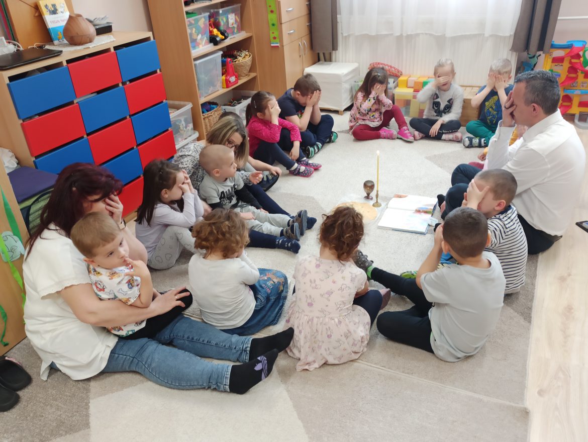 Biró István parókus vallási foglalkozásokat tart az óvodásoknak. Fotó: Kormos Tamás