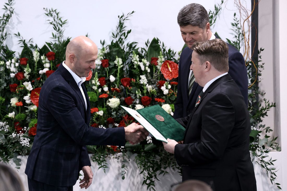 Süli András Mihálffy Béla országgyűlési képviselőtől és Mágori András Józseftől, a vármegyei közgyűlés elnőkétől vette át a díjat Fotó: CSOMSZISZ