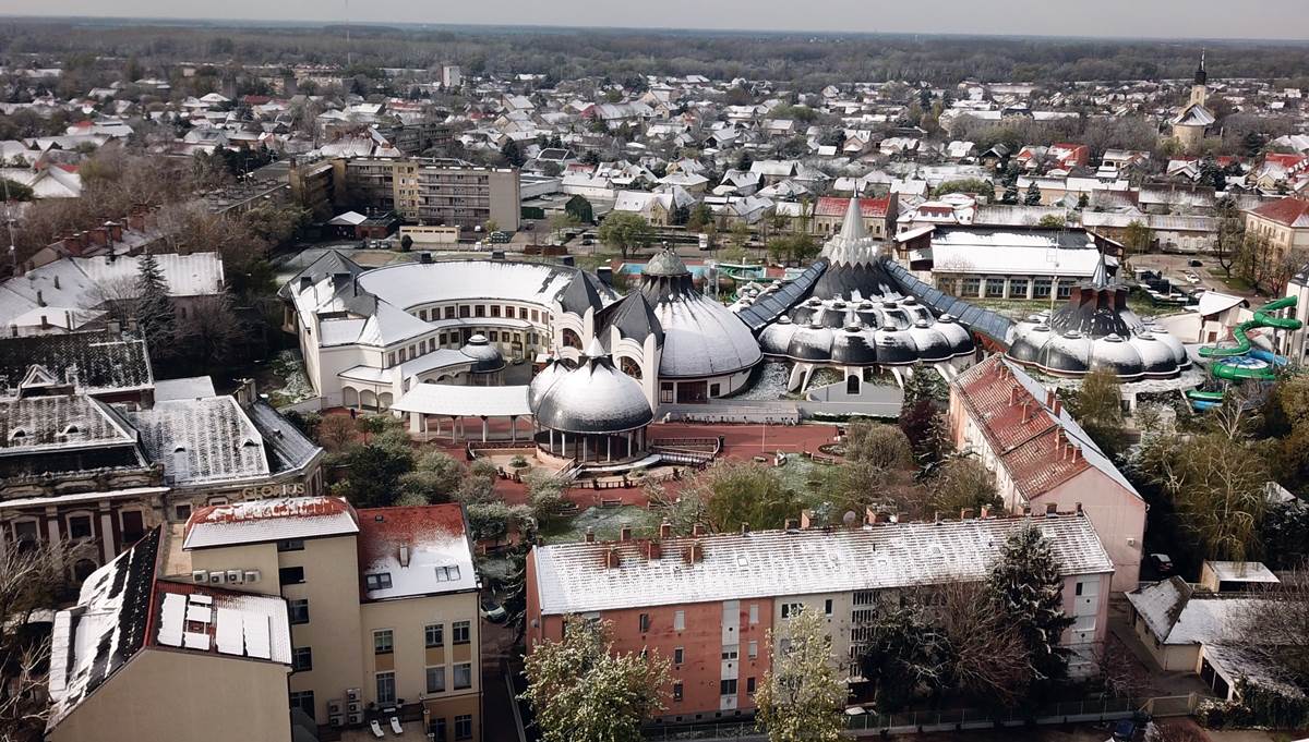 Hófehér tájra ébredt hétfőn Makó városa. A vasárnap érkezett hidegfront miatt hóborította a parkokat és az épületek tetőzetét.