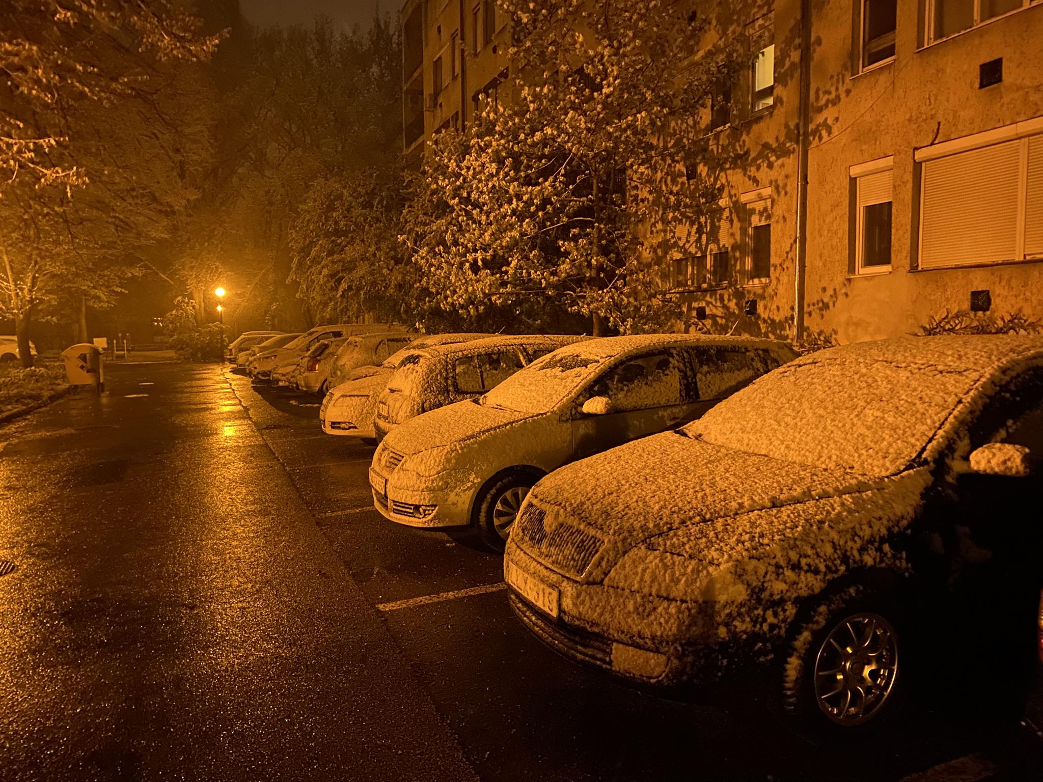 Vasárnap este havazott Makón. A tavaszi hó hétfőn délelőtt gyors olvadásnak indult. Fotó: Borka Péter
