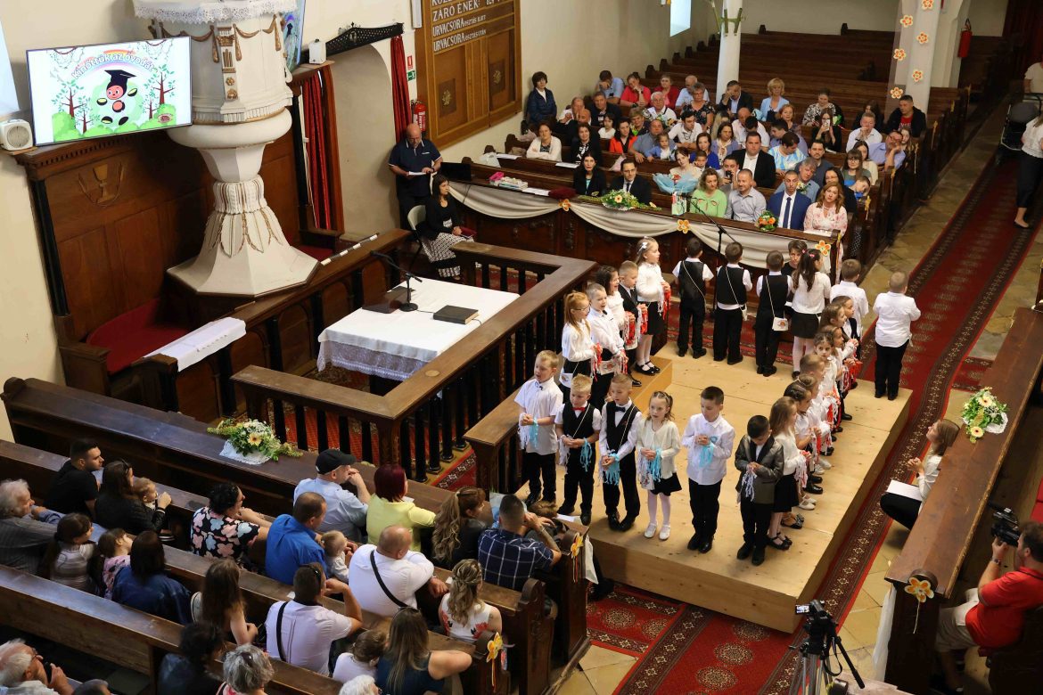 A hagyományokhoz híven a ballagók harangszóra indultak el az óvodájukból és átsétáltak a templomba, ahol Talpas Petra intézményi lelkész rövid istentisztelet keretében elbúcsúztatta őket. Ezt követően a nagycsoportosok énekekkel, versekkel örvendeztették meg a jelenlévőket. Ez a műsor volt az utolsó, amit így együtt adtak elő, hiszen ősztől már általános iskolás kisdiákként járják tovább az útjukat.