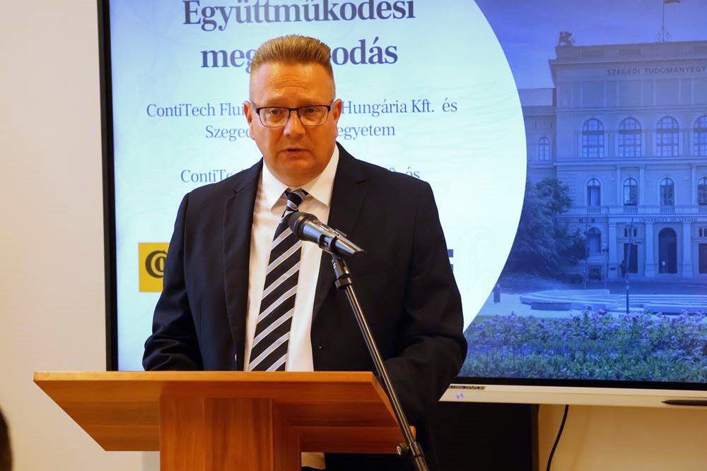 A ContiTech szegedi gyára jövőre lesz hatvan éves – erről már Horváth Sándor, a ContiTech Rubber Industrial Kft. ügyvezetője beszélt, aki maga is mindkét diplomáját az SZTE-n szerezte. Hozzátette, az együttműködés nem új keletű.
