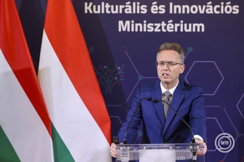 Hankó Balázs kultúráért és innovációért felelős miniszter a felsőoktatási felvételi ponthatárok kihirdetéséről tartott sajtótájékoztatón a Kulturális és Innovációs Minisztériumban. Fotó: MTI