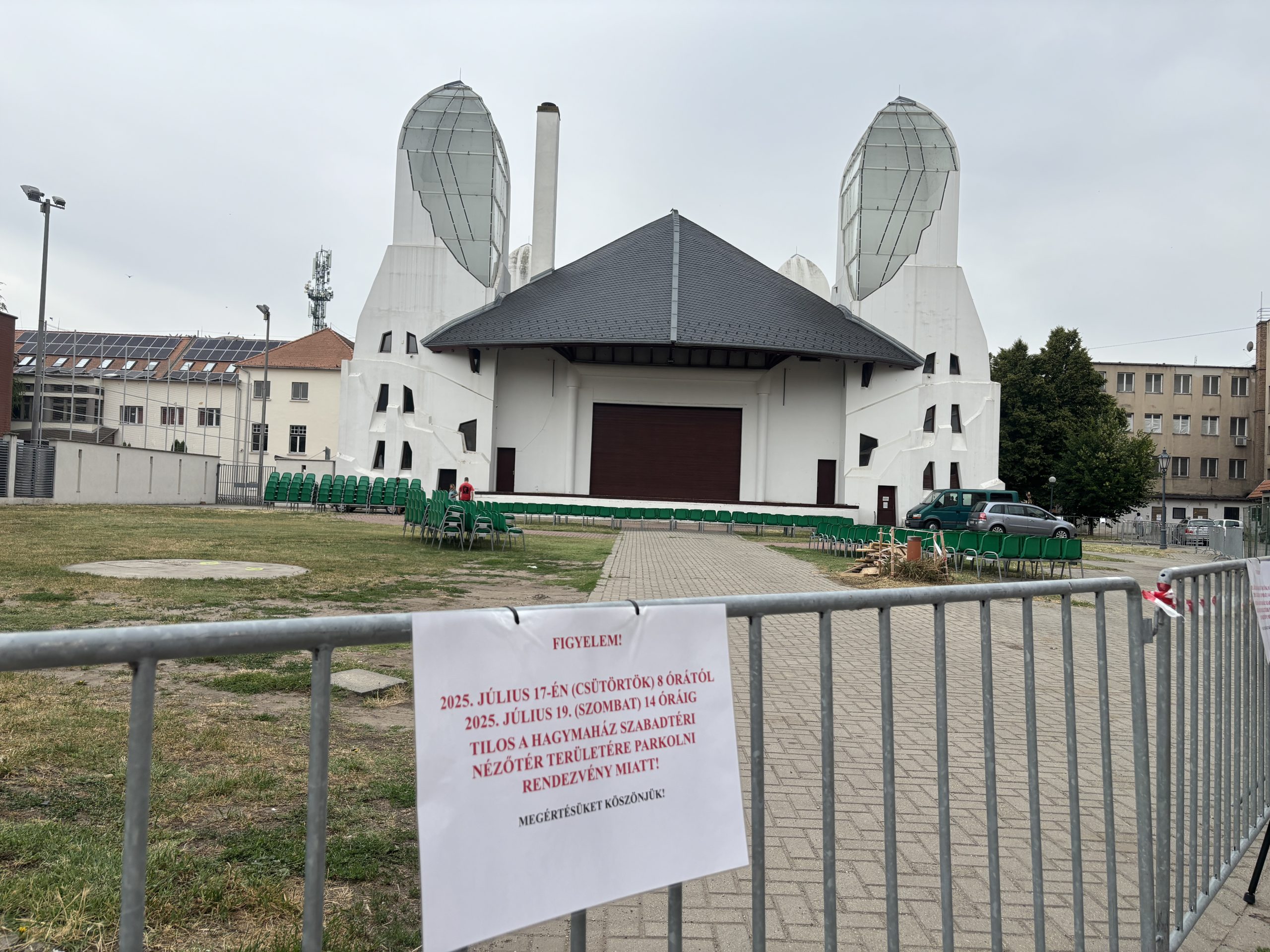 Oláh Nóra, a Hagymaház kulturális szervezője lapunknak elmondta: csütörtök reggel 8 órától, egészen szombat 14 óráig teljesen lezárják a Hagymaház mögötti szervízutat és a Hunyadi utca elejét. A korlátozásra azért van szükség, hogy a kamion a körforgalomból biztonságosan be tudjon fordulni a színpadhoz vezető útra, majd az előadás után el tudja hagyni a területet. A jármű hosszúsága miatt ez csak nagy ívű kanyarban lehetséges, amit a parkoló autók akadályoznának.