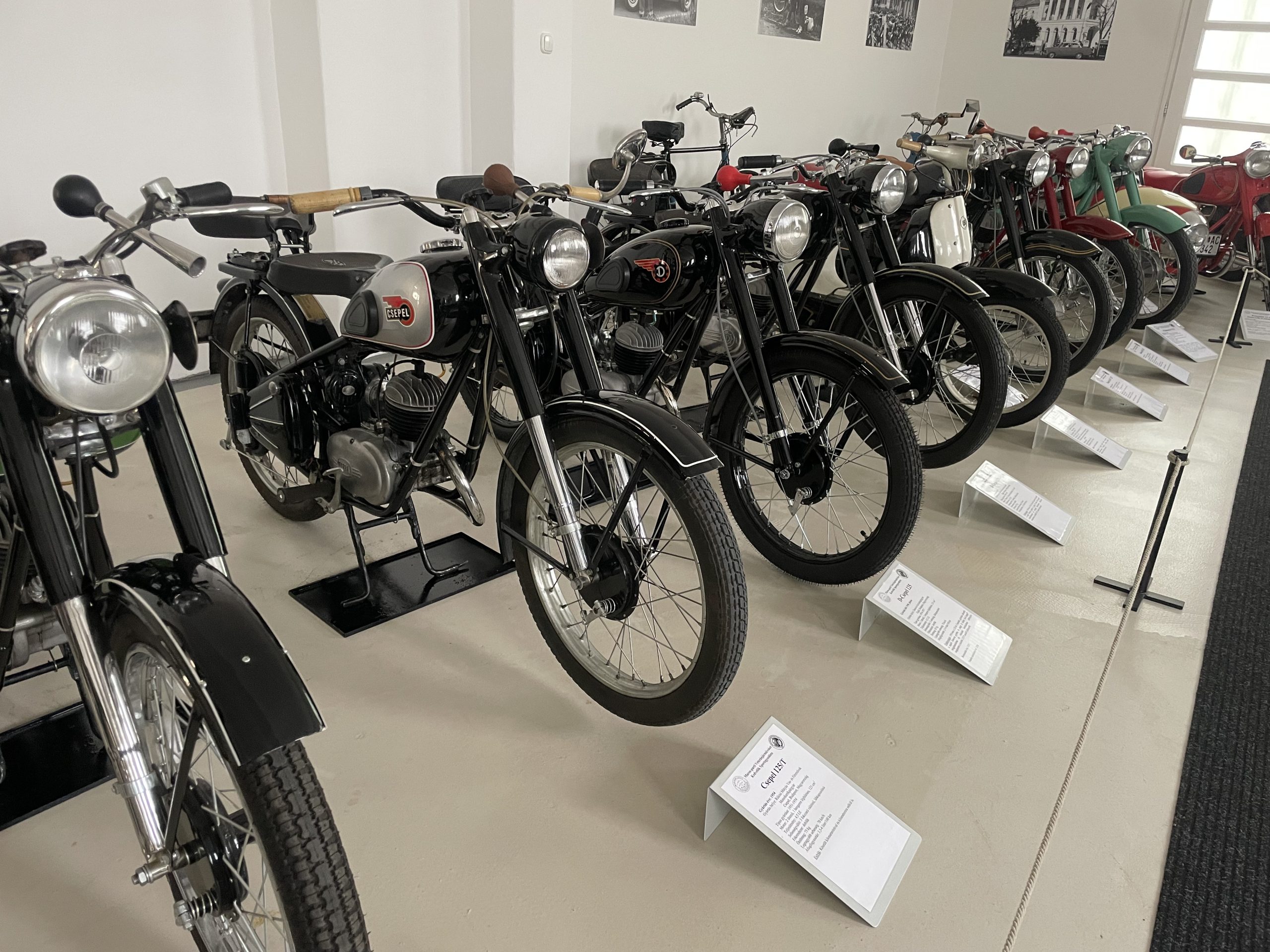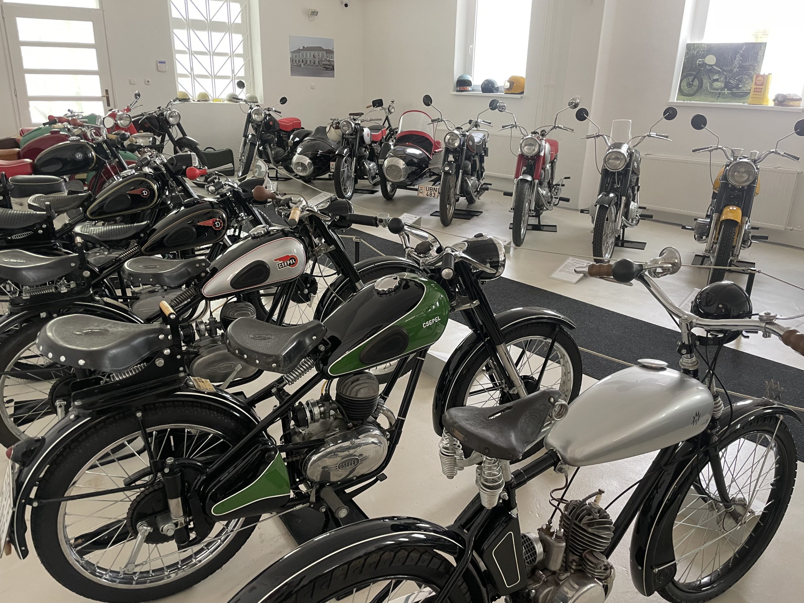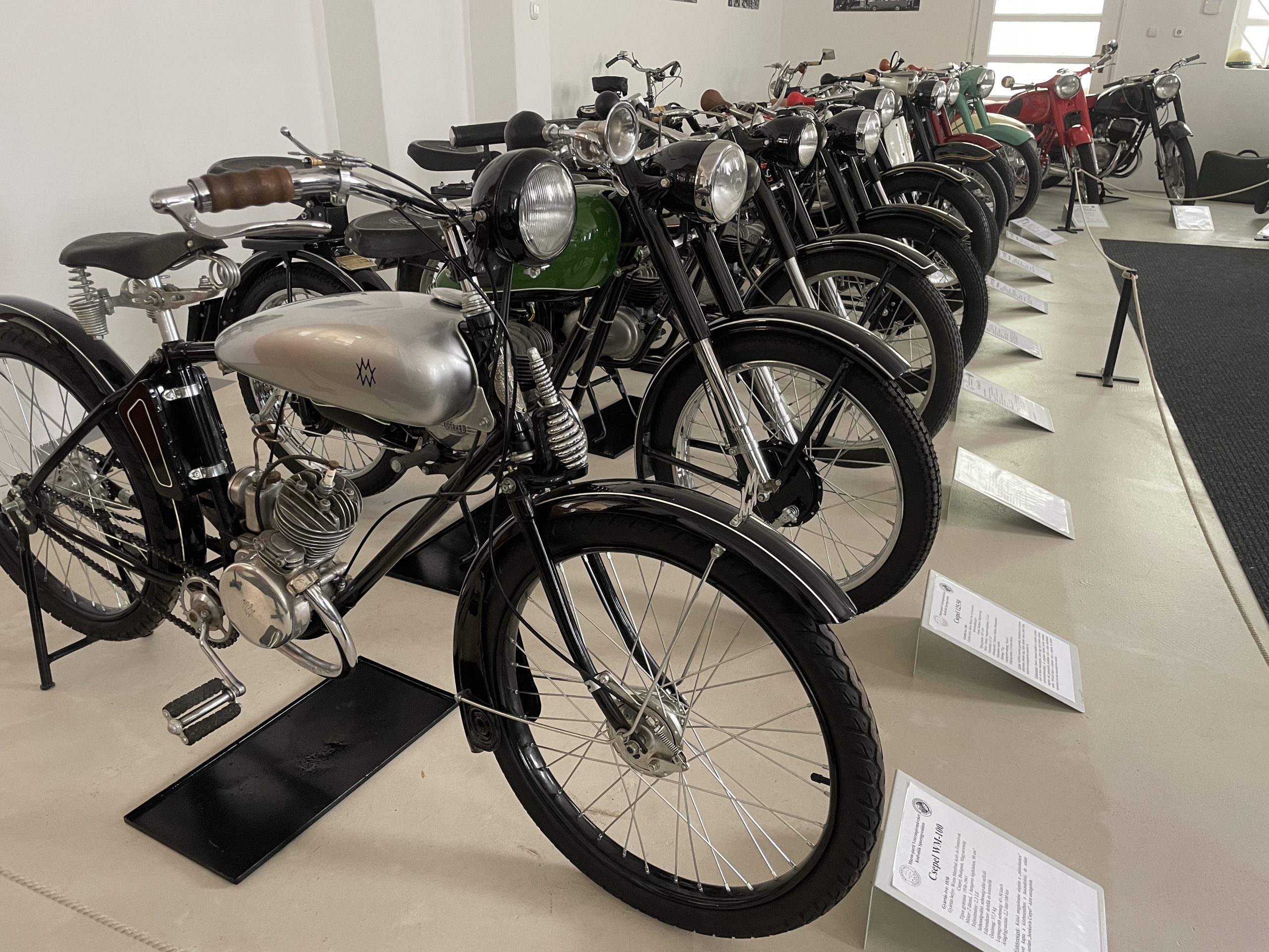 A következő teremben lépve a magyar és az európai motorkerékpár-gyártás színe-java fogadja a látogatókat. Csaknem negyven, gondosan restaurált jármű, mintha nem több évtizede, hanem most gördültek volna le a futószalagról. Köztük olyan kuriózumok is láthatók, mint a csepeli Weiss Manfréd Művek 250 köbcentis kísérleti motorkerékpárja, amiből 1929-ben összesen hat darab készült! A prototípust egy BMW-motorkerékpár ihlette. Sorozatgyártása azért maradt el, mert a Méray Motorkerékpárgyár tulajdonosa egykor levélben kérte a Weiss családot, ne tegyék tönkre. Az alku megköttetett: Weissék maradtak a segédmotoros kerékpároknál, míg a Méray gyár a nagymotorokkal próbálkozott.
