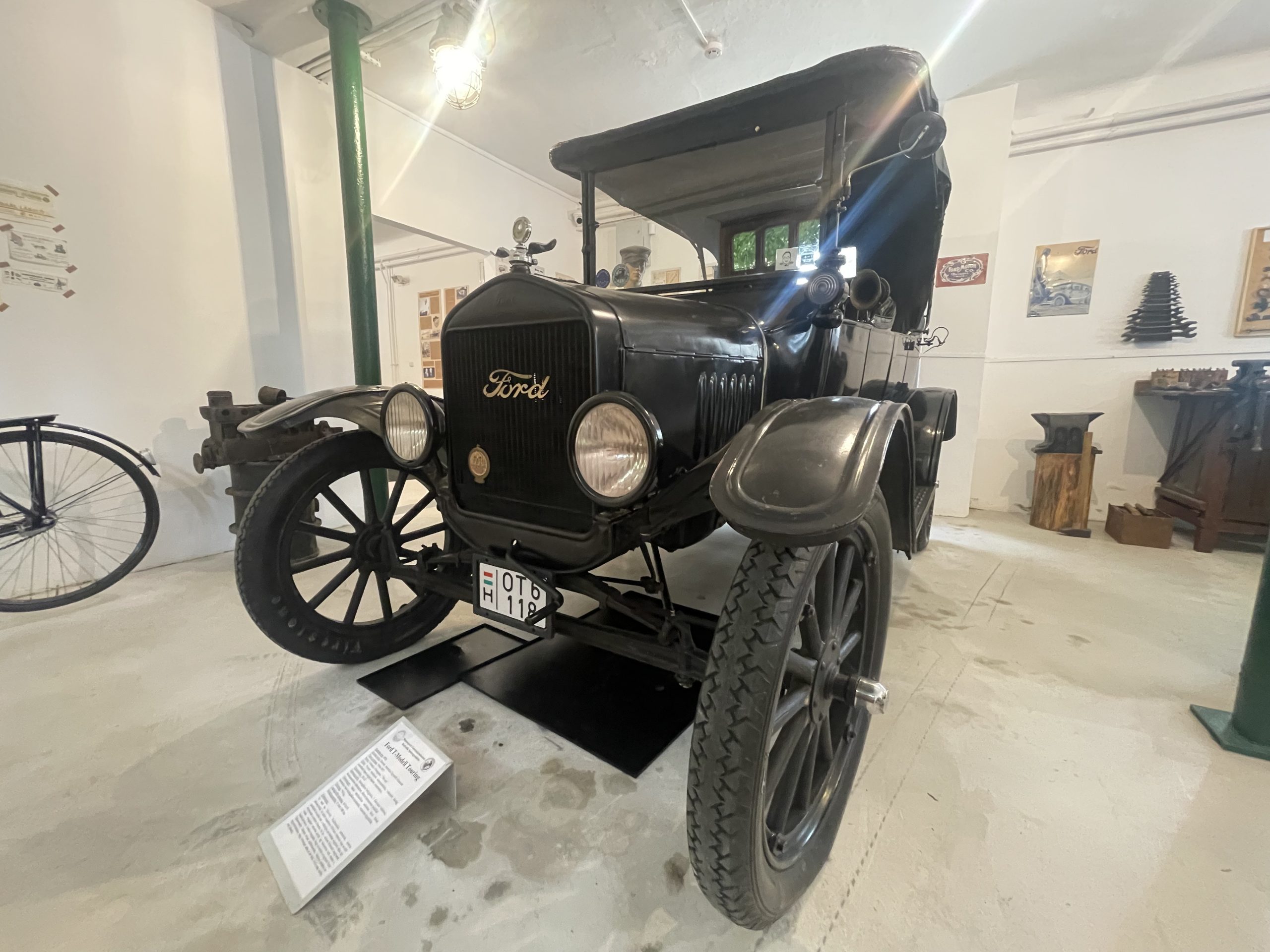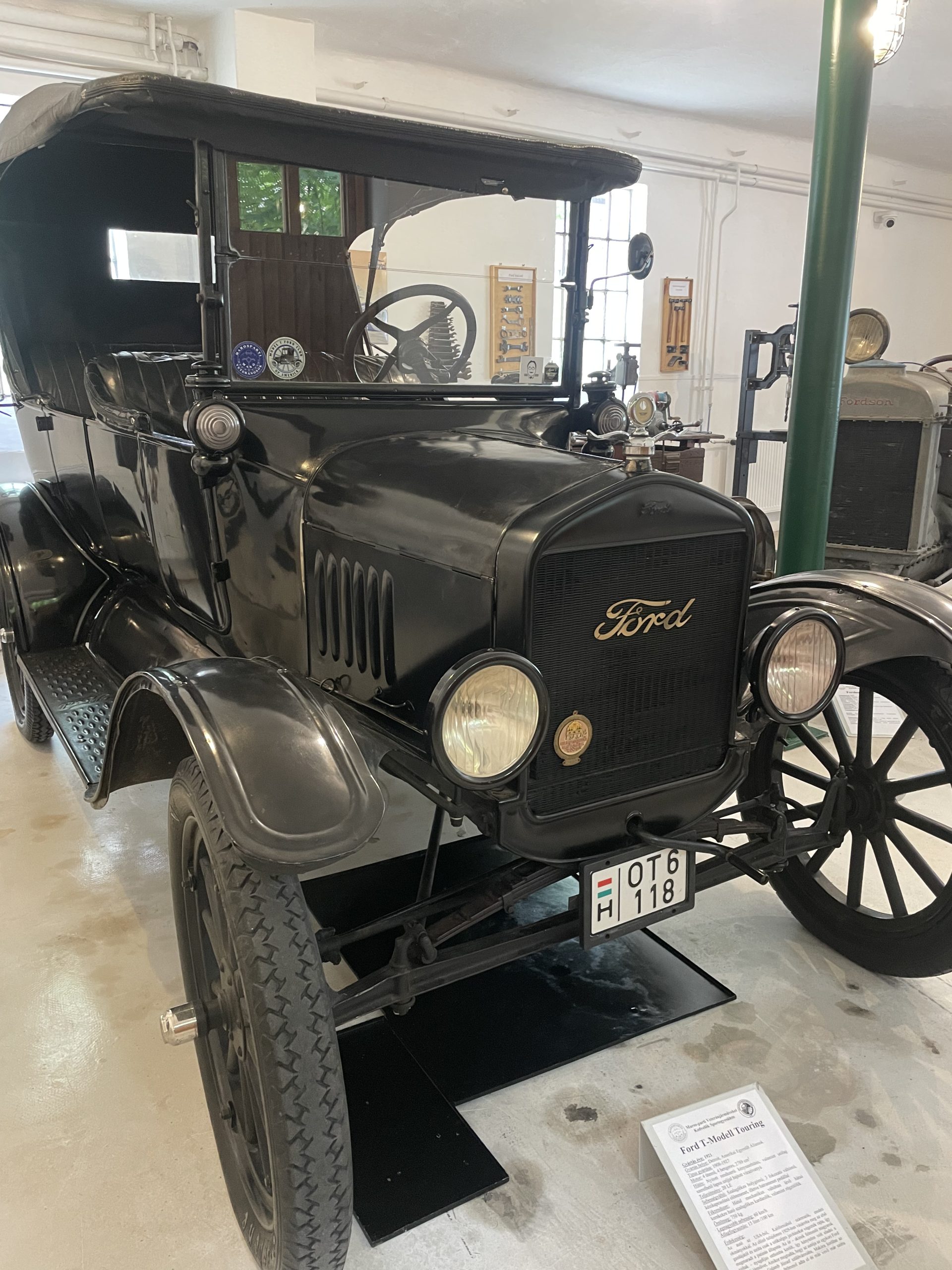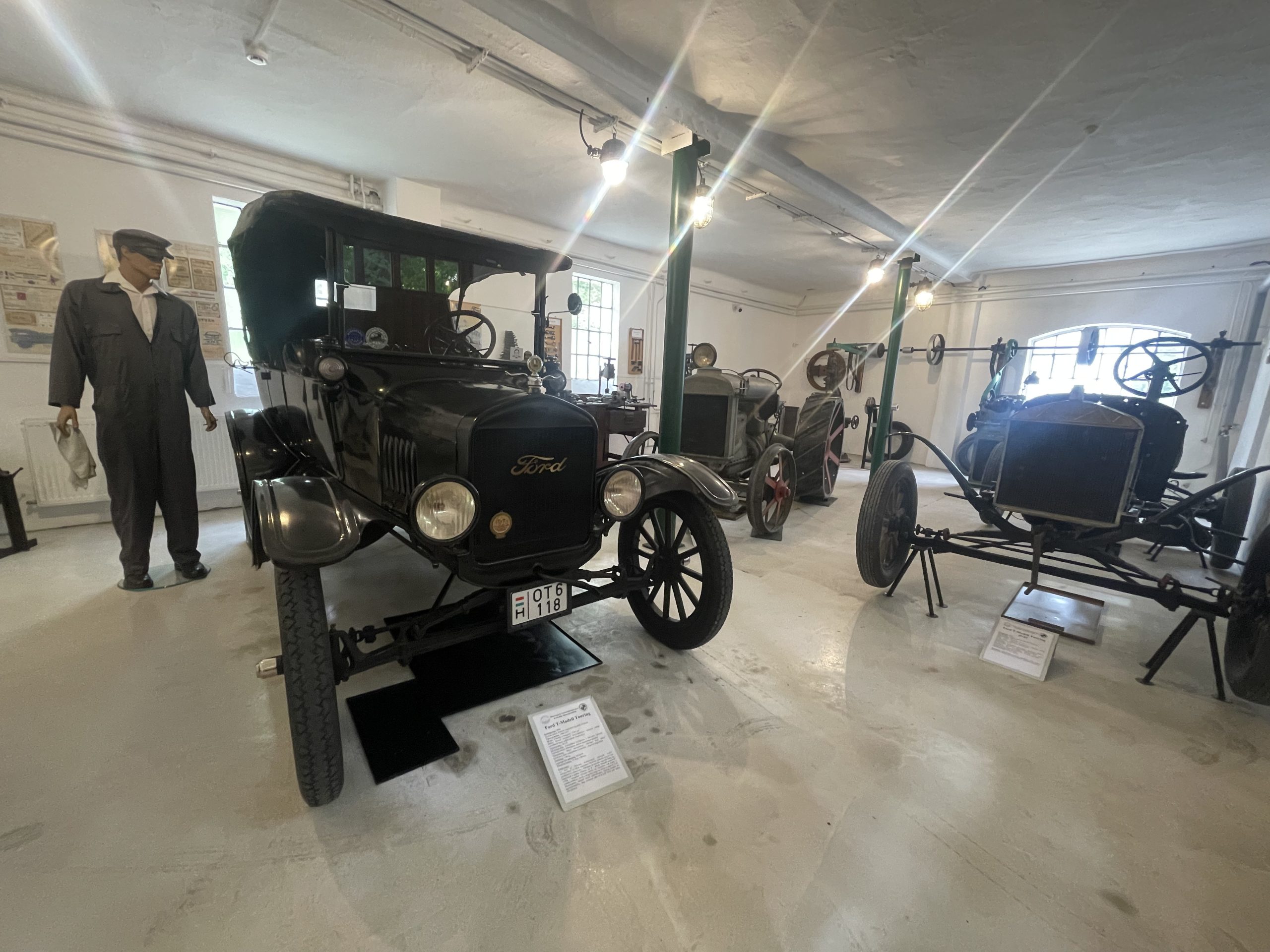 Van impozáns méretű négyszemélyes Touring, 20 lóerős, négyhengeres motorral, ami akár 65 kilométer/órás csúcssebességre volt képes, és hátsó rakfelülettel rendelkező Pickup, amit a korabeli farmokon használtak. A Ford T-modell ugyanis különböző változatokban készült. Egykor annyira népszerű volt, hogy állítólag mozgó templomot is építettek a kocsi alvázára. A szomszéd helyiségben pedig ott áll a Fordson traktor, amit tízezer szám vásárolták a gazdák és a két világháború közötti Magyarországra is eljutott.
