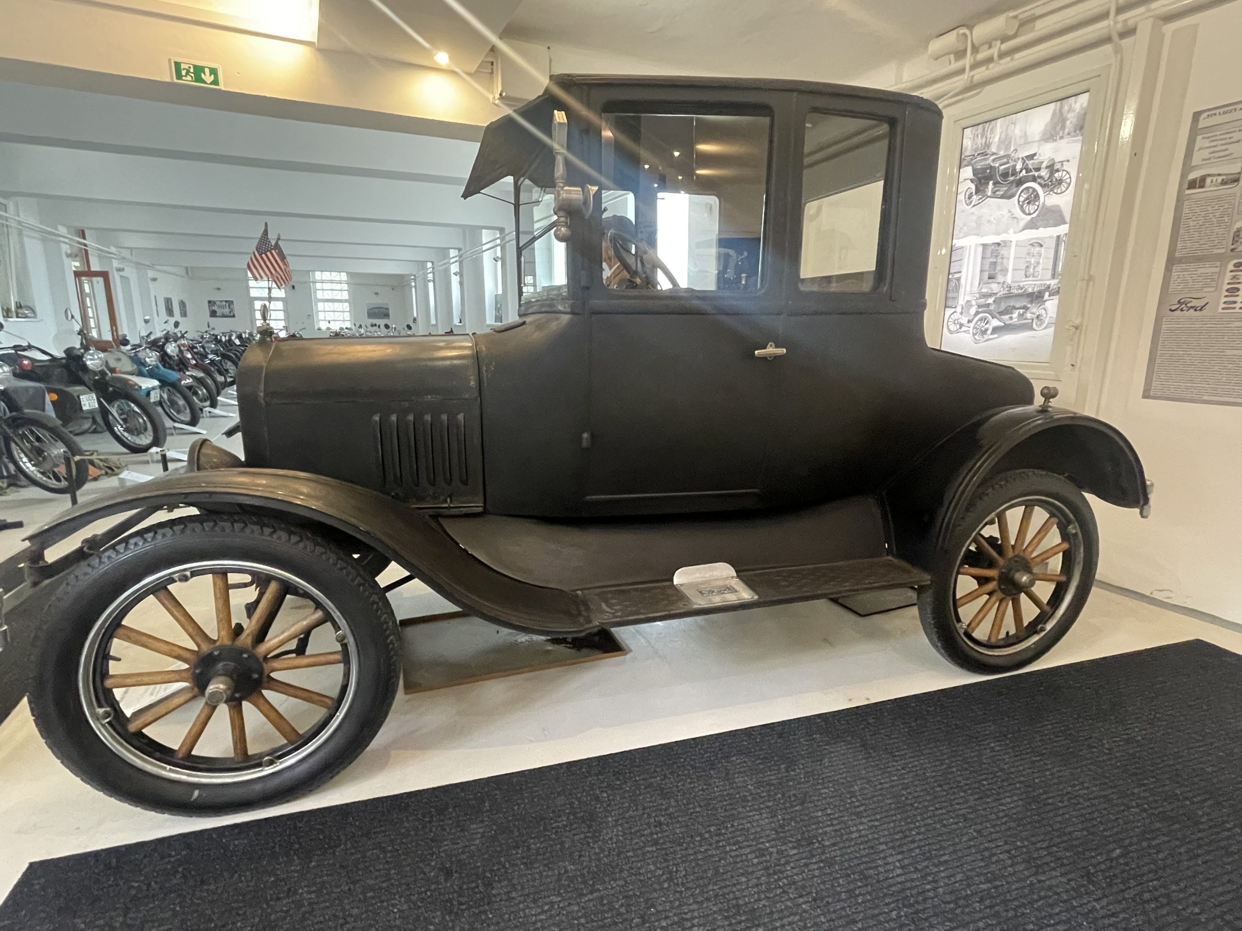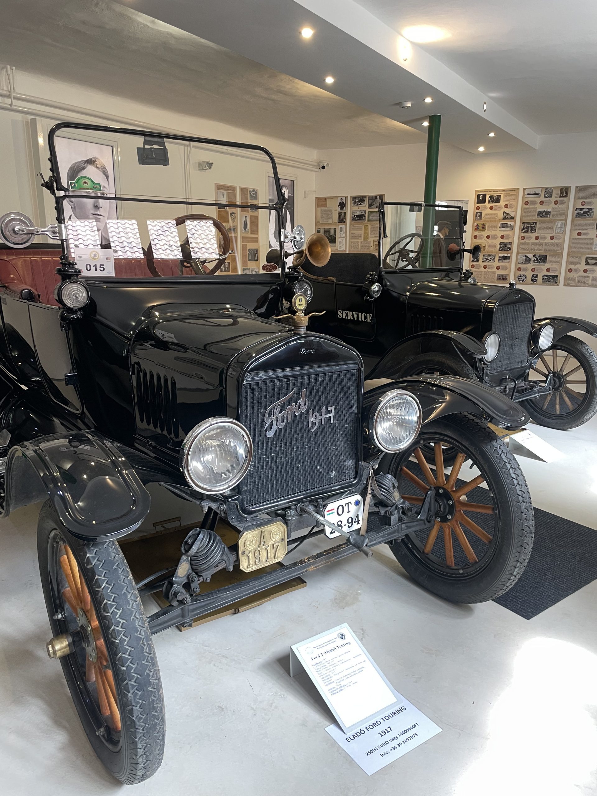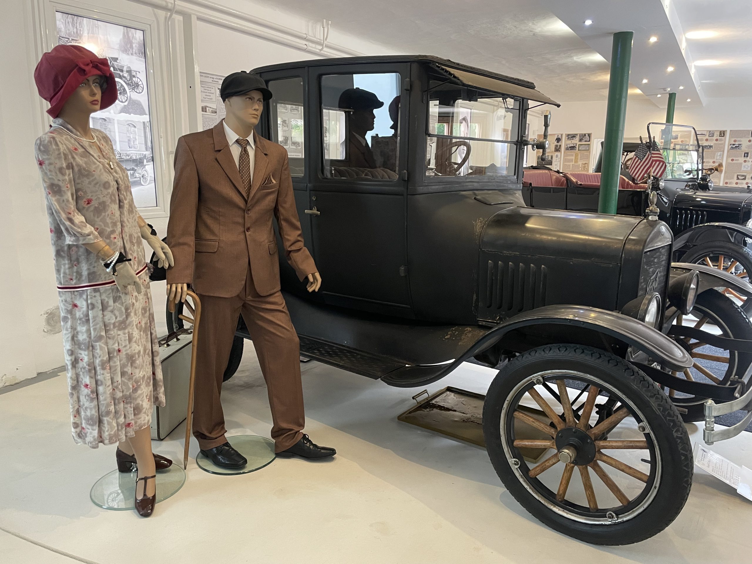 Van impozáns méretű négyszemélyes Touring, 20 lóerős, négyhengeres motorral, ami akár 65 kilométer/órás csúcssebességre volt képes, és hátsó rakfelülettel rendelkező Pickup, amit a korabeli farmokon használtak. A Ford T-modell ugyanis különböző változatokban készült. Egykor annyira népszerű volt, hogy állítólag mozgó templomot is építettek a kocsi alvázára. A szomszéd helyiségben pedig ott áll a Fordson traktor, amit tízezer szám vásárolták a gazdák és a két világháború közötti Magyarországra is eljutott.