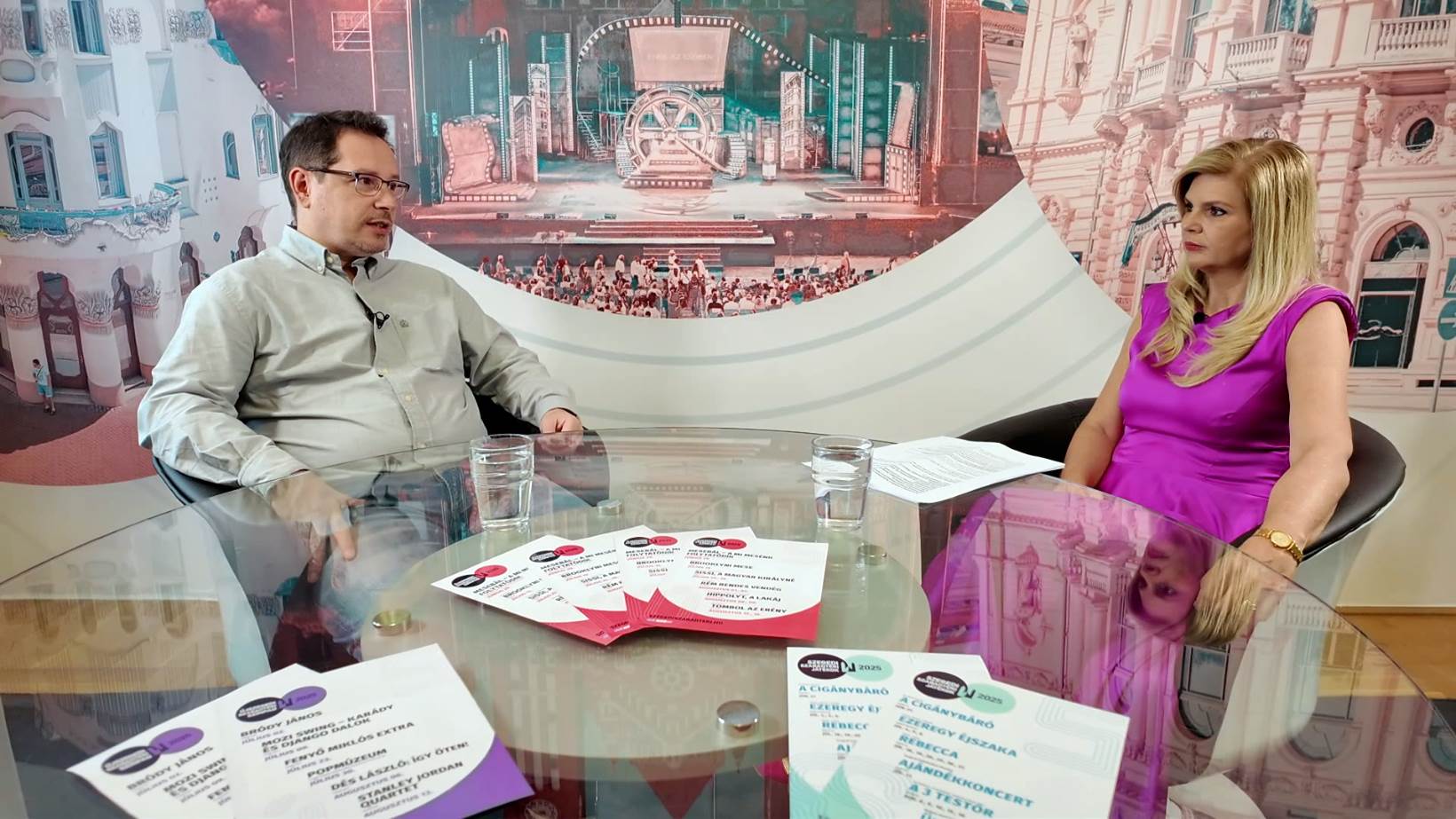 Barnák László, a Szegedi Nemzeti Színház és a Szegedi Szabadtéri Játékok főigazgatója Kisitók Tímeával, a Makói Városi Televízió divízióvezetőjével beszélgetett. Fotó: Makói Városi Televízió