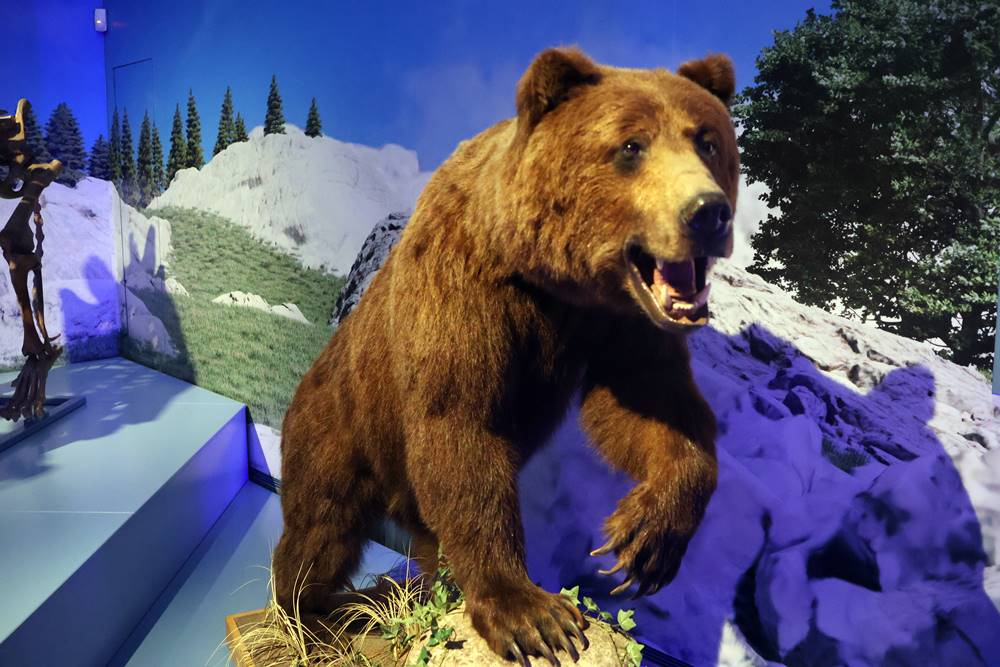 A másik terembe lépve a jégkorszak ugyancsak legendás állatai: egy barlangi medve és egy barlangi oroszlán fogadja a látogatókat.