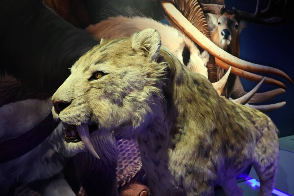 Az élethű rekonstrukciók időnként megmozdulnak, mozognak, morognak, vicsorognak a nagyközönségre, mintha csak a területüket védnék a hívatlan vendégektől. A teremben ugyancsak vannak csontmaradványok, például az egykor Észak-Amerikában élő kardfogú tigris koponyája.