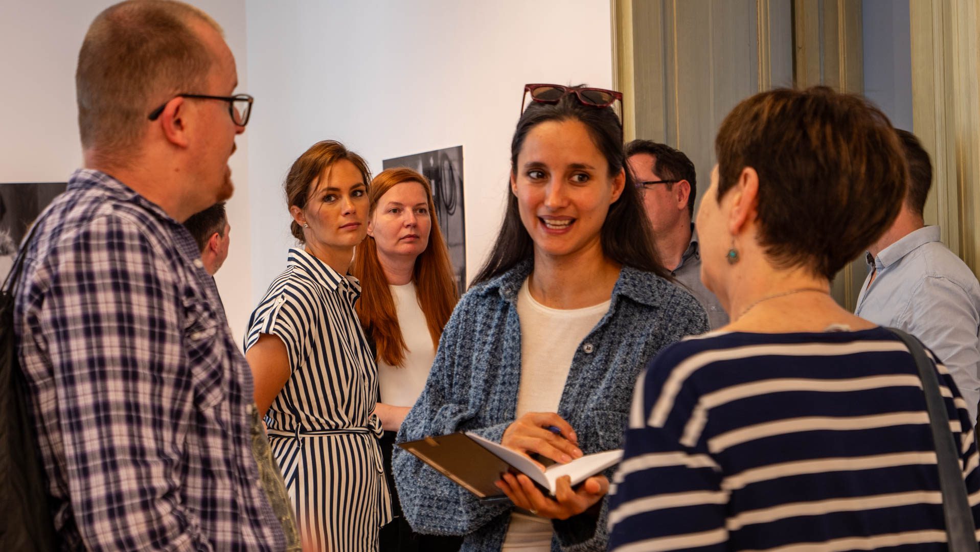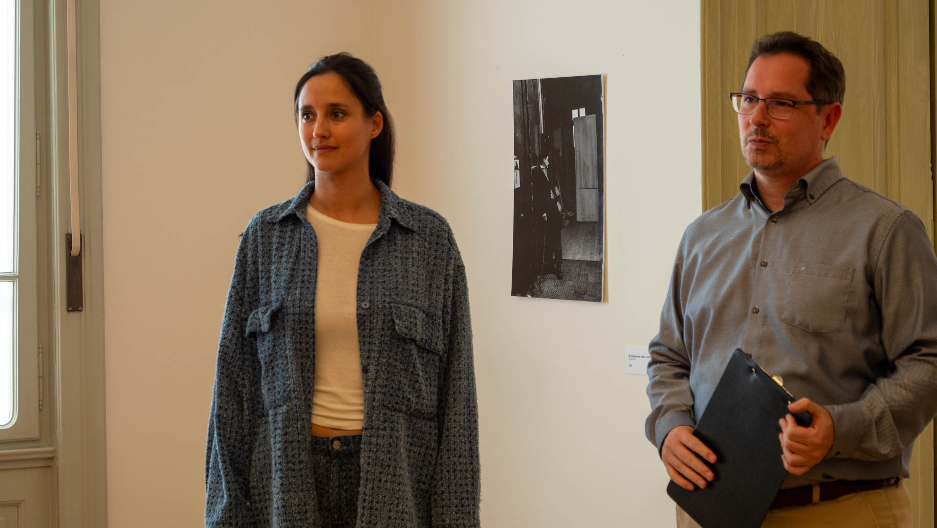 Trokán Nóra színművész és Barnák László, a Szegedi Nemzeti Színház főigazgatója a Mielőtt című kiállítás megnyitóján a szegedi Reök palotában. Fotó Rácz Richárd