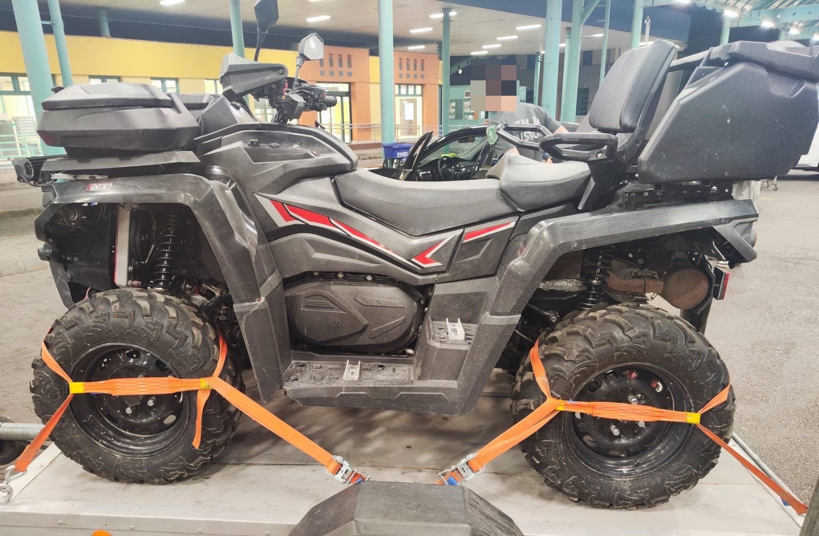 A csaknem másfél millió forintos quadot, azaz négykerekű terepmotort egy montenegrói állampolgár akarta utánfutón az országból kivinni. Nem sikerült neki. A röszkei autópálya-határátkelőhelyen bukott le.
