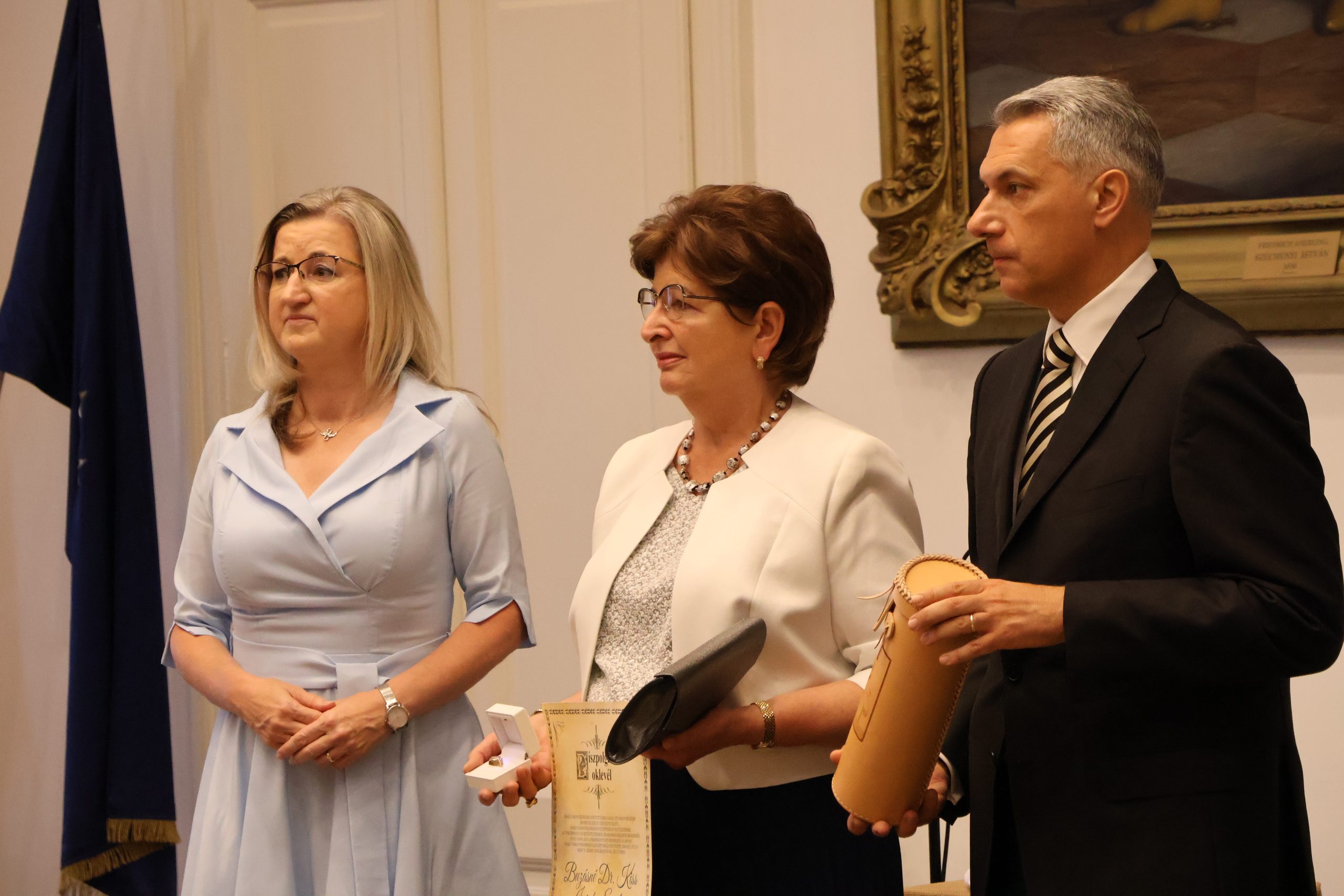 Farkas Éva Erzsébet polgármester és Lázár János miniszter adta át a díszpolgári címet a doktornőnek. Fotó: Kormos Tamás