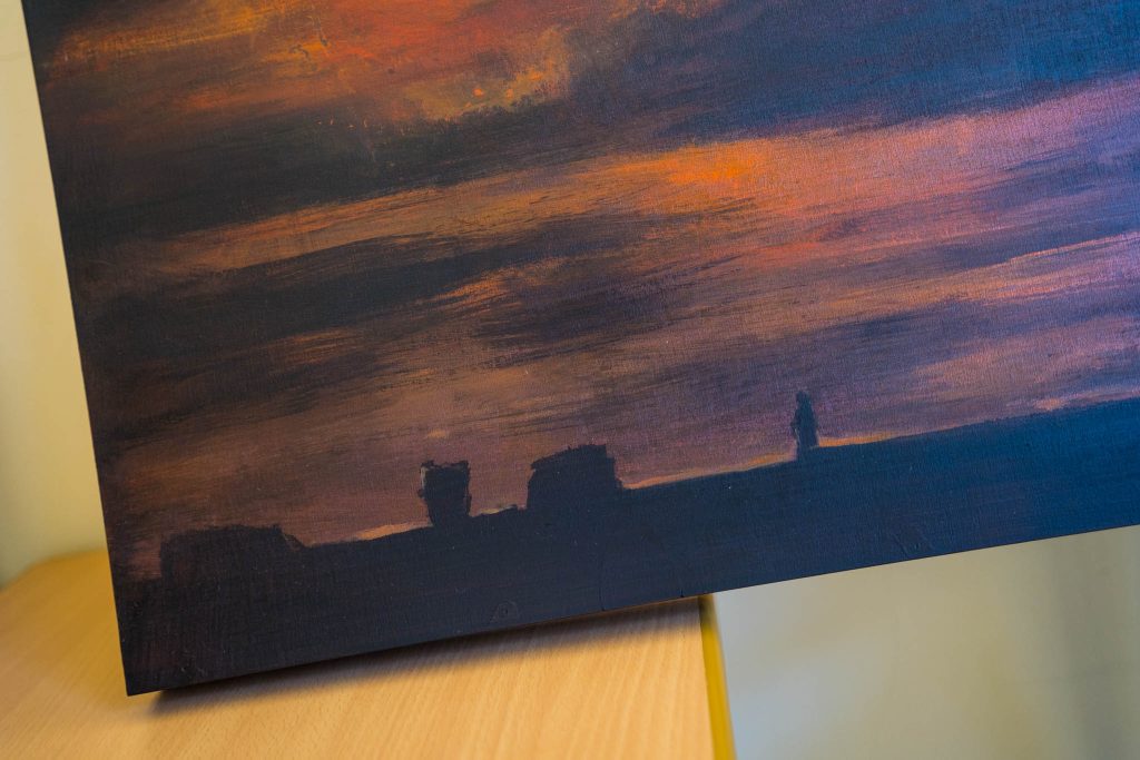Végül összesen hat darab festmény készült, ám ebből csak három lesz kiállítva a Hagymaházban, egyfajta triptichonként. Más-más elrendezésben készültek a képek, a tervek szerint két fekvő és egy álló fog kikerülni. Ez a művész elképzelése, azonban sok fog múlni a kiállítótér adottságain, valamint Karsai Ildikón is, aki amellett, hogy a Natura vezetője, a kiállítás berendezésekor kurátori szerepet is betölt.