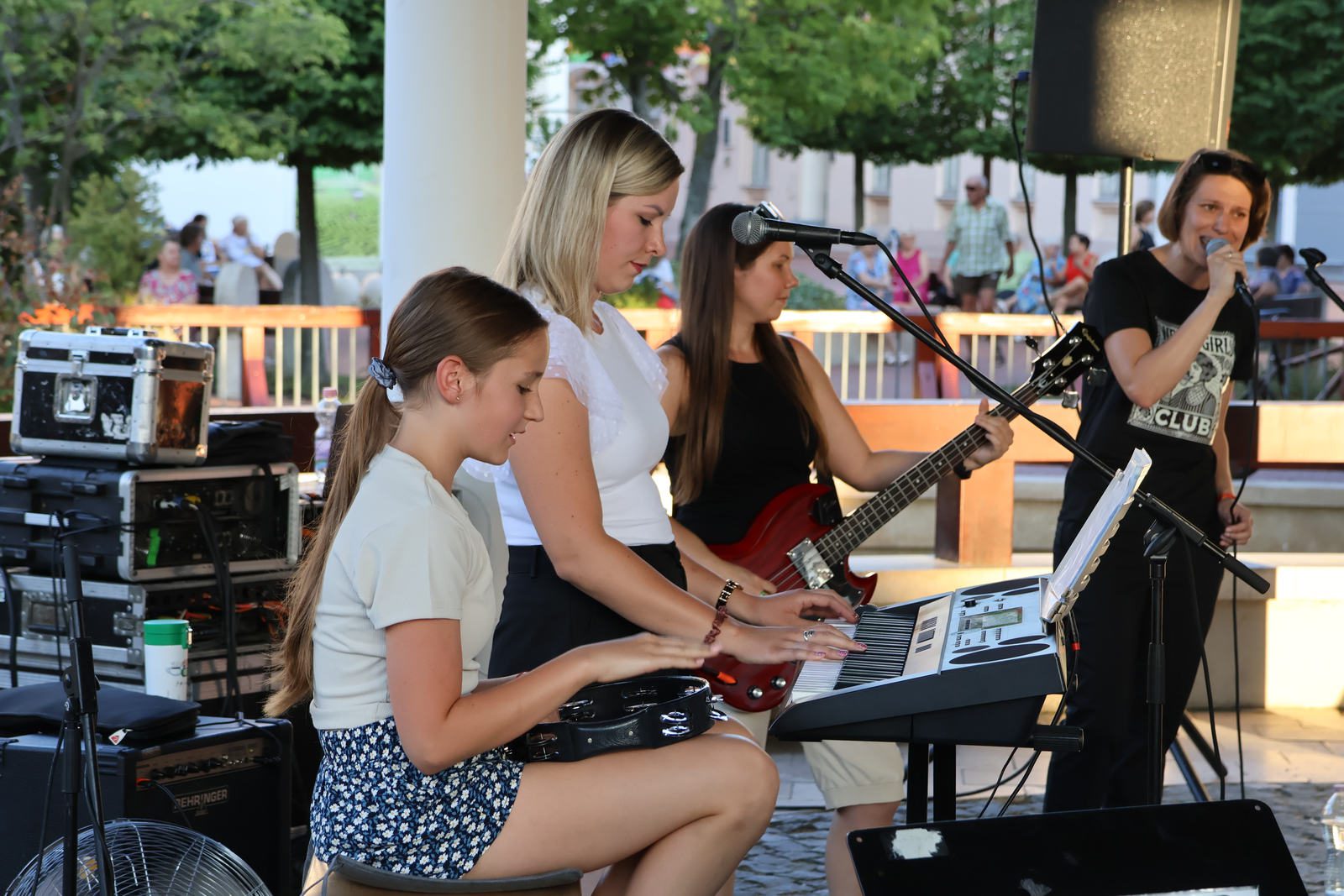 Rakonczás Pál zenepedagógus és tanítványai mutatkoztak be szombat este a Makovecz téren. A Kisparty Zenekar HZK-FM együttestől többek között Bikini, P. Mobil és Edda slágereket is hallhatott a közönség. Búza Ibolya Virág óvodapedagógus tíz éve játszik a zenekarban, ő beszélt a fellépésekről, a közös zenei munkáról.