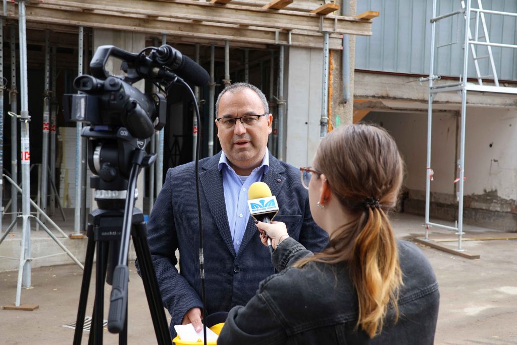 Június végén vette át a kivitelező cég, az RZV Invest Kft. a területet és neki is kezdtek a munkálatoknak. Utoljára bő egy hónapja volt bejárás a területen, azóta pedig sokat haladtak előre. Rideg Zoltán, a cég ügyvezető igazgatója kiemelte: a bontási munkálatokat befejezték, az aula szerkezetépítése megtörtént, továbbá a homlokzati nyílászáróknak a helyszíni beépítése is elkezdődött. Emellett négy tetőcseréből kettőt már megvalósítottak, a harmadik folyamatban van – számolt be a szakember. Kiemelte: az ütemterv szerint haladnak.