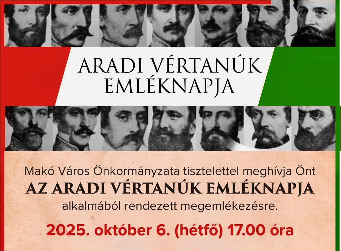 Az 1848–49-es forradalom és szabadságharc leverése után Aradon kivégzett tizenhárom magyar honvédtisztre emlékezik az ország október 6-án, hétfőn. Ugyanezen a napon végezték ki 1849-ben Pesten az első felelős magyar kormány miniszterelnökét, Batthyány Lajost. A makói önkormányzat szervezésében a Kossuth-szobornál hajthatnak fejet a hősök előtt a megemlékezők. A 17.00 órakor kezdődő rendezvény végén mécseseket gyújtanak, majd elhelyezik az emlékezet virágait a Kossuth-szobor talapzatánál.