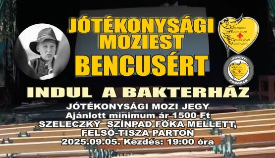 Bence megsegítésénének érdekében a reménykedő édesapa szervezett egy jótékonysági vetítést szeptember 5-e, péntek este 19 órára. Az Indul a bakterházat láthatják az érdeklődők a Felső Tisza-parton a Tisza Teátrumban. Kovács Imre hozzátette: egész hónapban lesznek ilyen jótékonysági vetítések, az eladott jegyekből befolyt bevétel 100%-a pedig Bence gyógyulását szolgálja. Aki pedig esetleg segíteni szeretne, de nem tud elmenni a vetítésre, az alábbi bankszámlaszámra tud utalni: