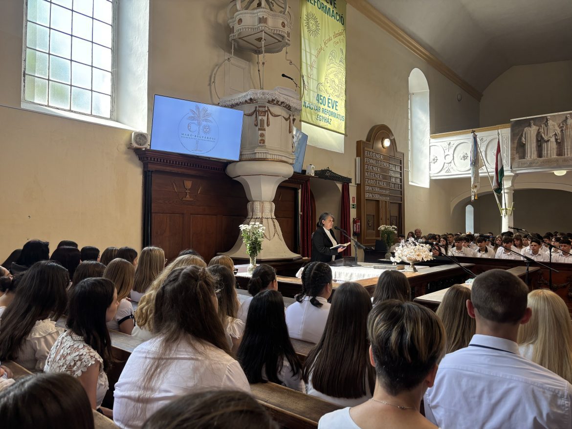 A JUGYU ünnepségét a belvárosi református ótemplomban tartották szeptember elsején, ahol Babik Katalin vallástanár a csendre, a bizalomra és a cselekvő szeretet fontosságára hívta fel a figyelmet.