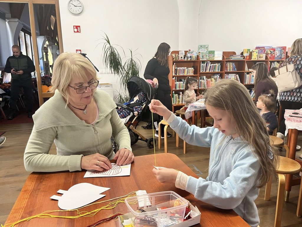 A könyvtárban több középiskolás is volt, akik 50 órás közösségi szolgálat keretében egy-egy kézműves állomáson segédkeztek. Közülük az egyik, Szebehelyi Fanni úgy fogalmazott, hogy azért a könyvtárban vállalta el ennek a teljesítését, mert szerinte ez egy nagyon jó hely, mindenki kedves és sok jó program van itt. „Igazából ezt nem munkának fogjuk fel, hanem szórakozásnak” – tette hozzá. Egy másik diák, Kolostyák Tamara pedig elmondta: neki a praktikusság is közrejátszott a választásban, hiszen közel van a lakhelyéhez a bibliotéka.