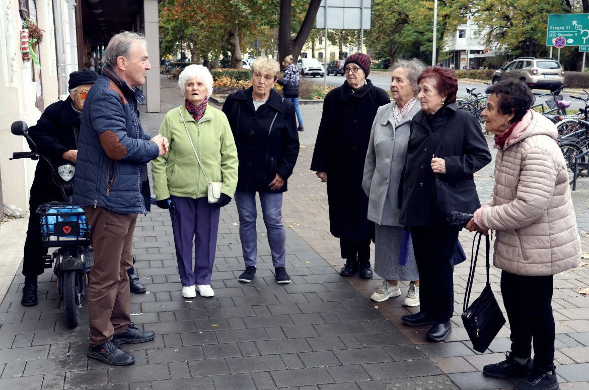 Szemerkélő esőben, a Korona előtt gyűltek össze a makói csoport tagjai. Amikor a Hadirokkantak, Hadiözvegyek és Hadiárvák Országos Nemzeti Szövetsége (HONSZ) 1993-ban újjáalakult még csaknem száz tagja volt a helyi szervezetnek, de ahogy telnek-múlnak az évtizedek, folyamatosan csökken a tagság. A csoport tagjai a második világháborúban vesztették el valamelyik családtagjukat.