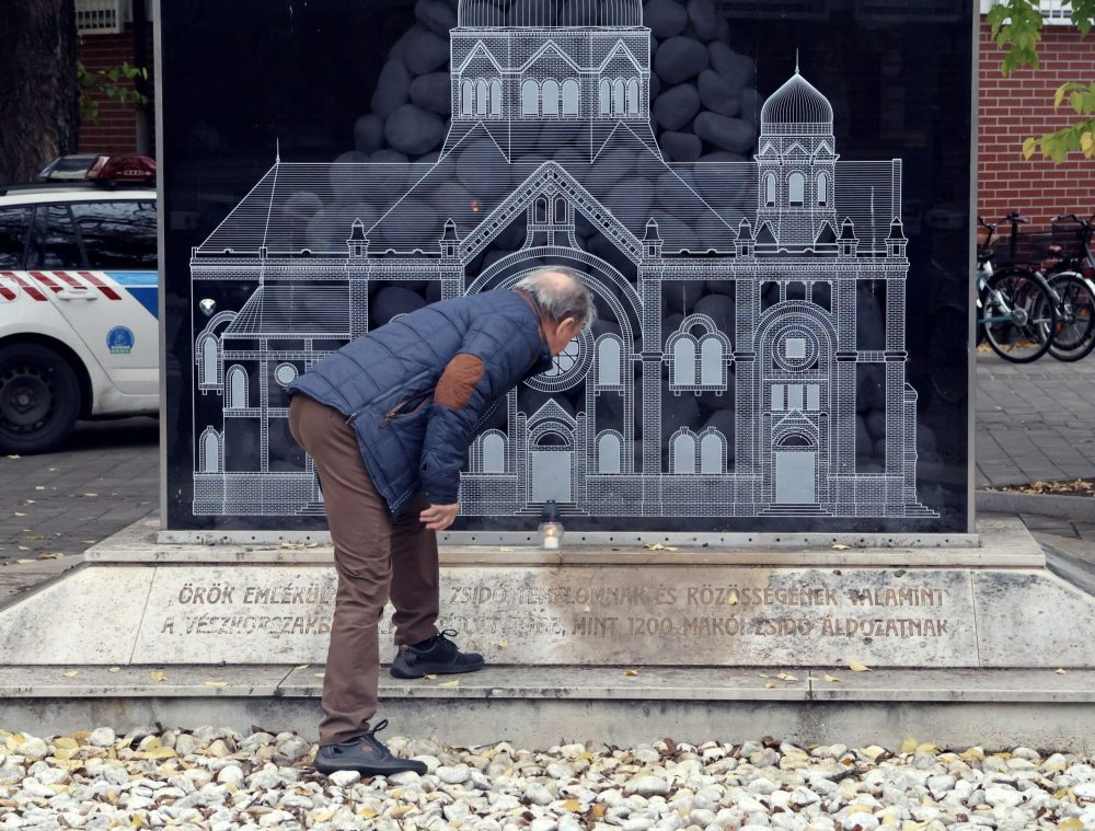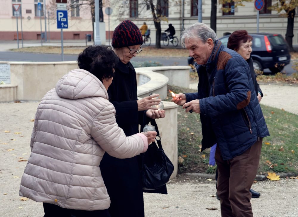 Csütörtökön gyújtottak mécseseket a makói emlékműveknél. Fotó: Jeszenszky Zoltán