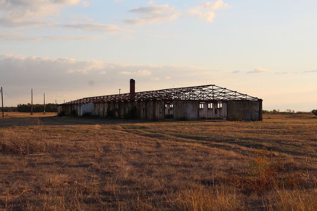 A valamikori termelőszövetkezet épületei már csaknem teljesen összeomlottak. Fotó: Wikimedia Commons