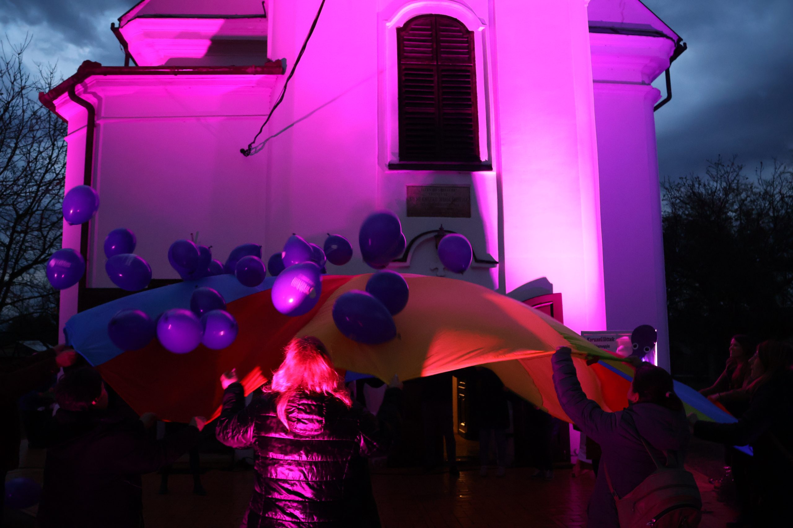 A görögkatolikus templomot már a korábbi évben is kivilágították a világnap kapcsán, de most Sándor Sarolta kezdeményezésére programokkal is színesítették ezt a késő délutánt. Elsőként flashmobot tartottak, vagyis egy hatalmas textília segítségével lila léggömböket pattogtattak a templom bejárata előtt. Ezt követően közösen imádkoztak a kisbabákért és családjaikért, majd egy sétát tettek a fényárban úszó templom körül, a programot szeretetvendégség zárta. Az eseményen Farkas Éva Erzsébet polgármester is részt vett.