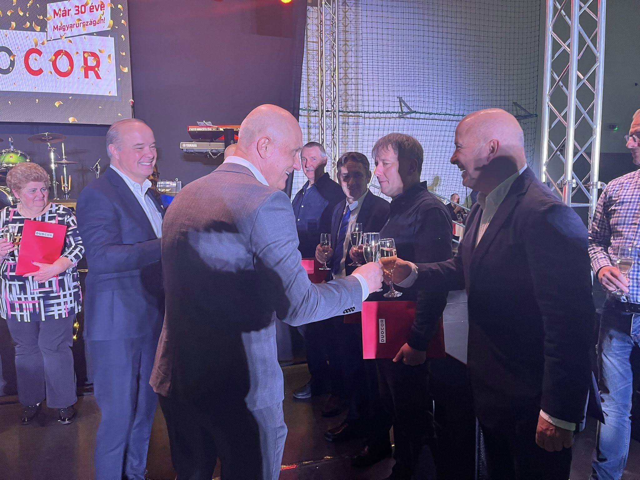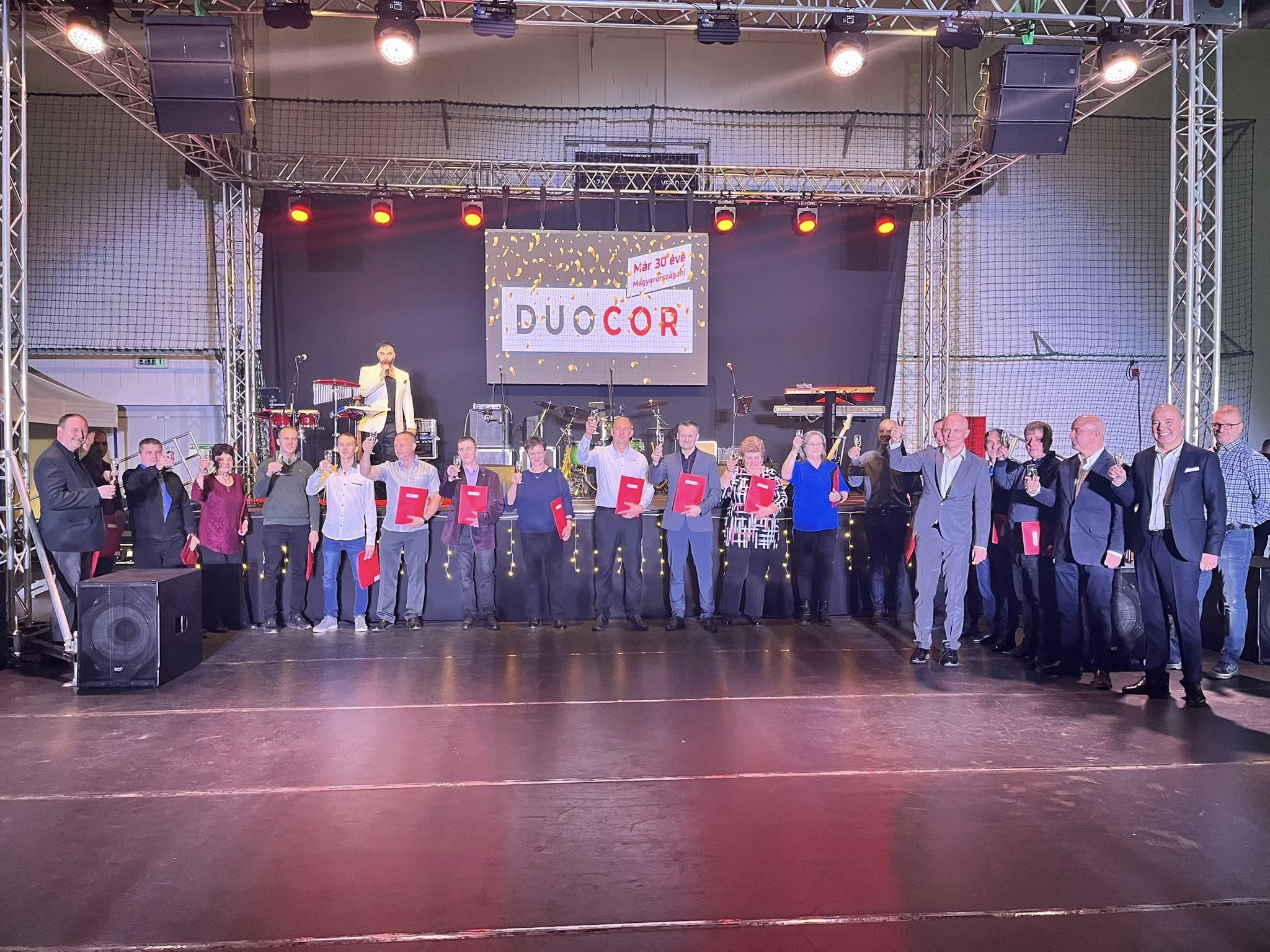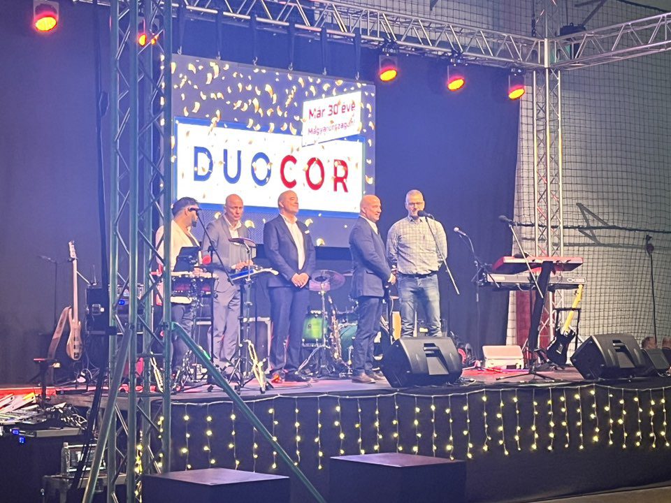 Idén is megtartotta hagyományos évzáró ünnepségét a makói Duocor. Vacsorával, zenével és a jubiláló dolgozók köszöntésével vette kezdetét az este. Azért volt kifejezetten különleges ez az alkalom, mert a vállalat két tulajdonosa, Michael és Matthias Stegner is ellátogatott a Szabó „Sonka” László kézilabdacsarnokba szombat este. Erre pedig eddig még nem volt példa, hogy mindketten egyszerre jelen lettek volna. Gábor Zoltán, a cég helyi ügyvezető igazgatója lapunknak kiemelte: nehéz év van a hátuk mögött, de ami nem öl meg, az megerősít.