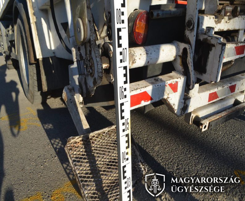 Nem vette észre a sofőr, hogy a jármű holtterében egy villanyoszlop van, és tolatás közben kollégáját odaszorította. Fotó: ügyészség
