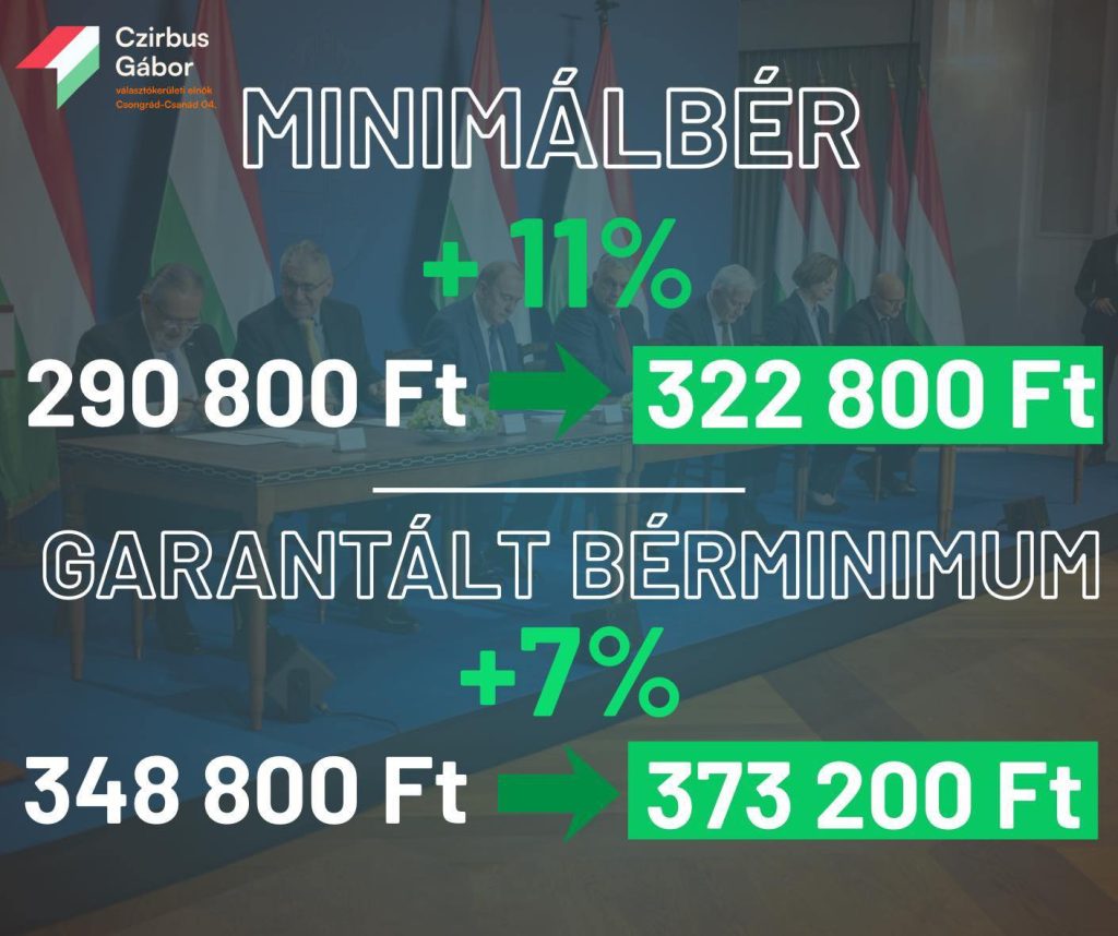 „2010-ben szakítottunk azzal a modellel, amely a keményen dolgozó emberekkel szemben mélyen igazságtalan, segélyalapú társadalmat erőltette, és egy új, ambiciózus irányt indítottunk el: a munkaalapú társadalom felépítését” – írta közösségi oldalán Czirbus Gábor a minimálbér és a garantált bérminimum emeléséről szóló megállapodás aláírását követően. Makó alpolgármestere, a Fidesz választókerületi elnöke arra emlékeztetett, hogy akkor sokan kételkedtek, de az eredmények önmagukért beszélnek: ma már 1 millióval többen dolgoznak, mint kormányváltás előtt, és Magyarországon gyakorlatilag megvalósult a teljes foglalkoztatottság.