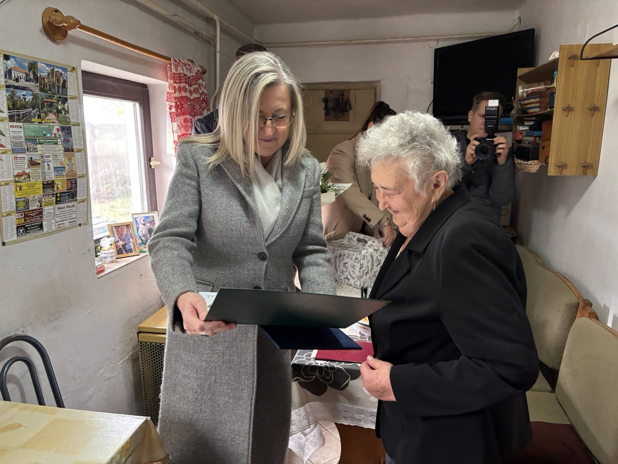 Farkas Éva Erzsébet polgármester és Vass Gábor önkormányzati képviselő személyesen keresték fel otthonában Buza Istvánnét, akit virágcsokorral, tortával, valamint emléklappal köszöntöttek 90. születésnapja alkalmából. Az ünnepelt 1935. november 6-án született Makón, és itt töltötte gyermekkorát is.