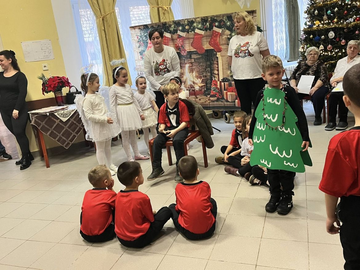 A hagyományos karácsonyi műsoron nemcsak a munkatársak és az ellátottak szerepeltek, hanem gyerekek is érkeztek. A Makói Óvoda Kálvin téri tagintézményének Napocska csoportjából jöttek nagycsoportosok, akik egy szép műsort adtak elő. Makán Marianna óvodapedagógus megosztotta: egy saját maguk által kitalált, A kisfenyő csodakarácsonya című drámajátékkal érkeztek. Hozzáfűzte: a karácsonyi készülődésbe természetesen bevonják a kicsiket is, a műsorok összeállításában is kikérik a véleményüket.