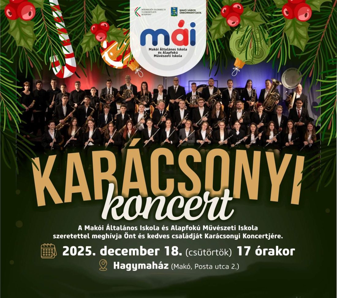 Különleges koncert hívja a közönséget a Makói Általános Iskola és Alapfokú Művészeti Iskola. December 18-án, csütörtökön, 17:00 órától karácsonyi hangversenyt adnak az intézmény hangszeres növendékei. Az esten fellépnek az iskola kamaracsoportjai, a Kicsinyek Kórusa és a Bartók Gyermekkar, valamint az Ifjúsági Fúvószenekar. Vezényel: Gábor-Nagy Árpád.