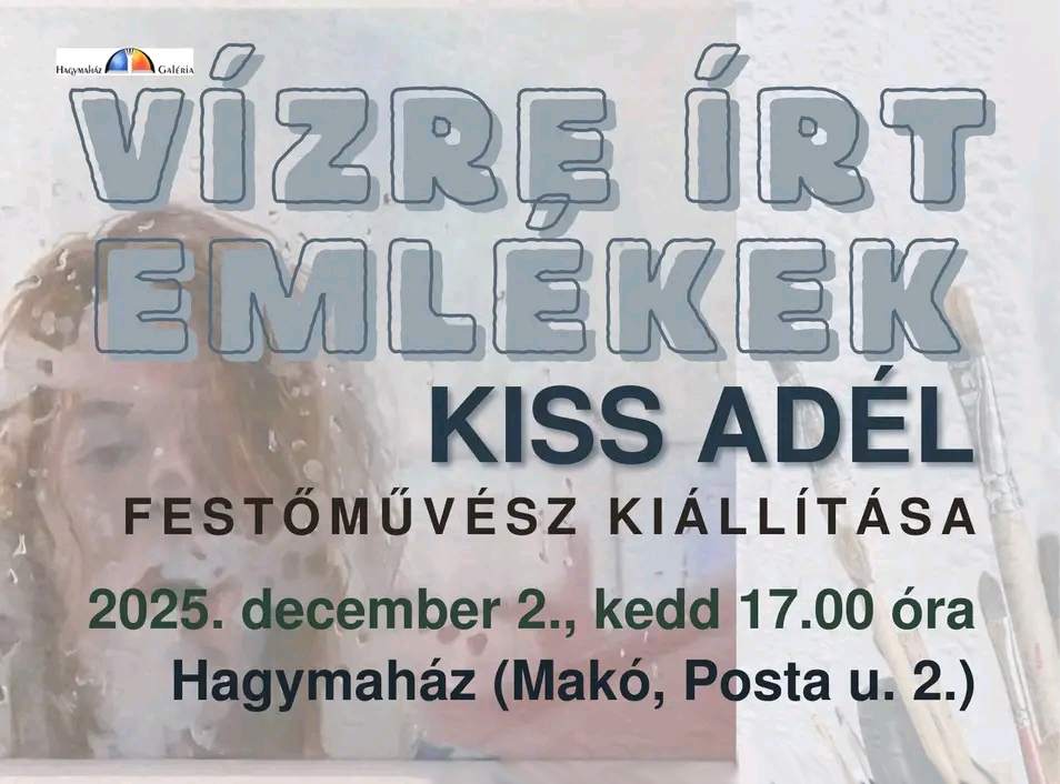 Kiss Adél festőművész munkáiból nyílik kiállítás december 2-án, kedden a Hagymaházban. A tárlatot Fazakas Réka művészeti író, a Műcsarnok kurátora nyitja meg.
