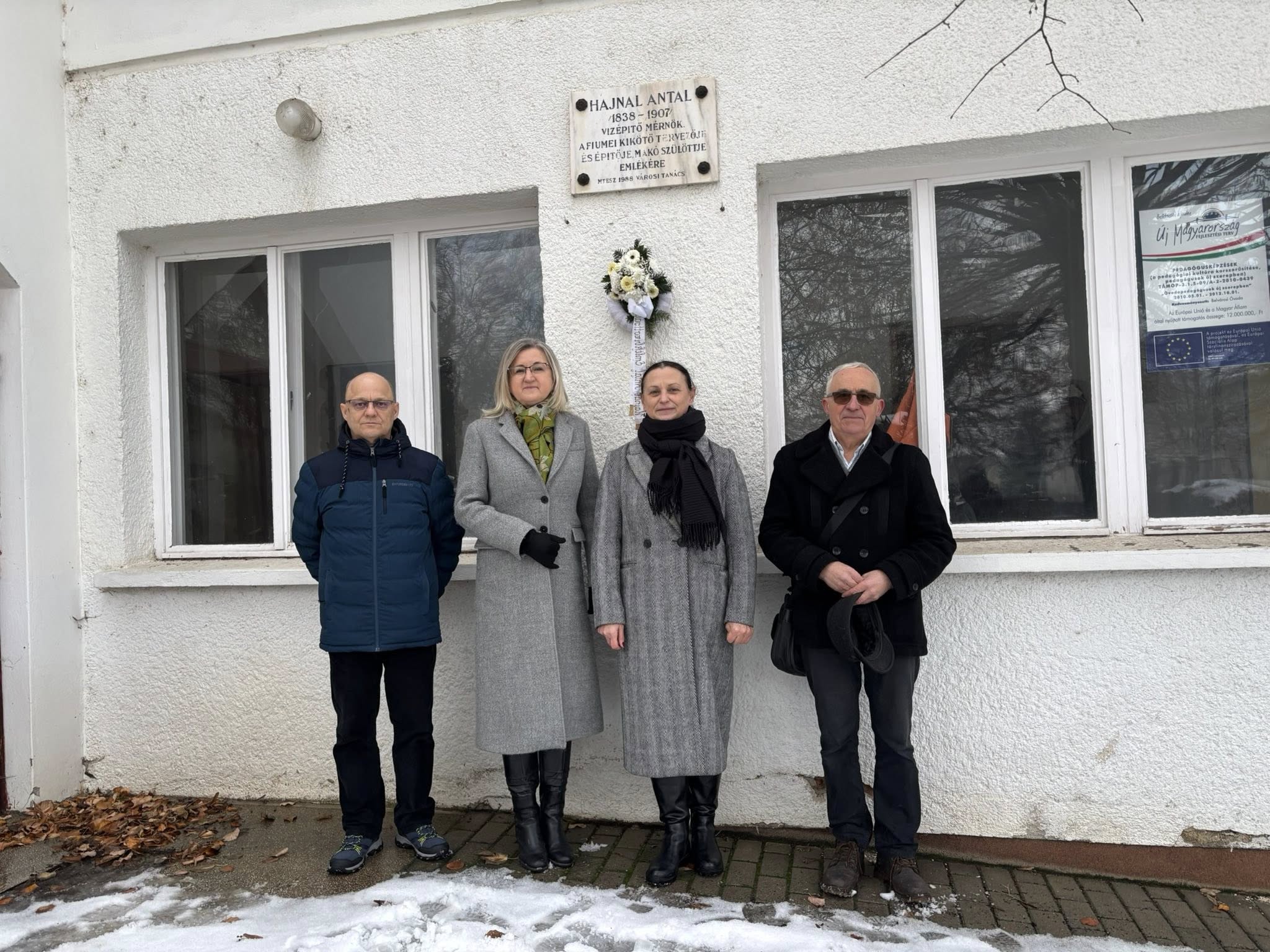 A Kálvin utcai egykori szülőháza helyén álló épület falán található emléktábláját koszorúzták meg Hajnal Antalnak péntek délelőtt. Szikszai Zsuzsanna, a József Attila Városi Könyvtár és Múzeum igazgatója lapunknak kiemelte: nem csupán Galamb József, a világhírű Ford T-modell konstruktőre született Makón, hanem egy másik mérnök is, Hajnal Antal. Az igazgató hozzátette: az ő legnagyobb volumenű munkája Horvátországban található.