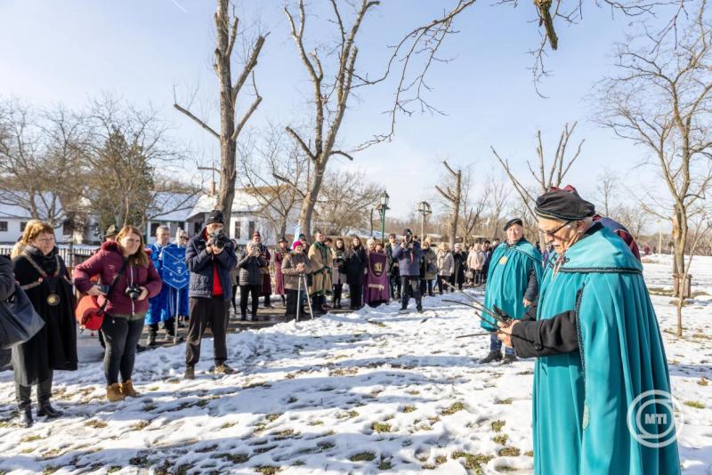 Felvonulnak a borrendek a Szent Vince napja alkalmából tartott ünnepségen az Ópusztaszeri Nemzeti Történeti Emlékparkban 2026. január 24-én. Fotó: MTI/Rosta Tibor