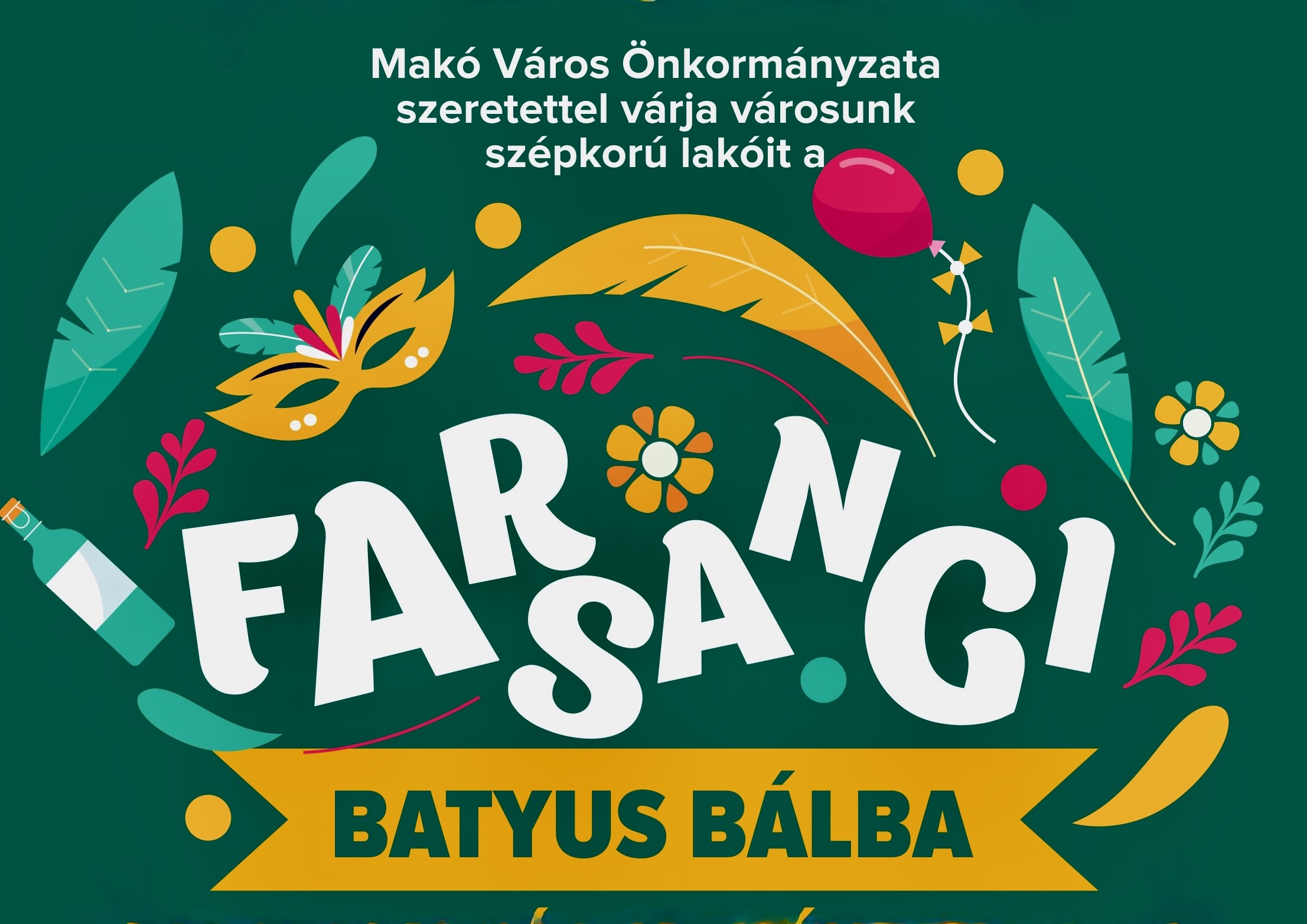 Már most beírhatja a naptárába! Február 13-án, pénteken Farsangi batyus bál lesz Makón, a városi sportcsarnokban az önkormányzat szervezésében. A közönséget Teremi Trixi és Csengeri Attila színművészek zenés műsora szórakoztatja majd, a jó hangulatról Csikota József és zenekara gondoskodik. Köszöntőt mond Farkas Éva Erzsébet polgármester.