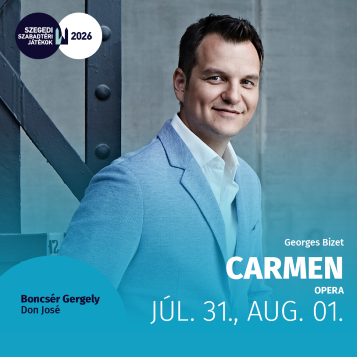 A debreceni Csokonai Nemzeti Színház előadásában Don Joséként Magyar Arany Érdemkereszttel kitüntetett énekművész, Boncsér Gergely lesz Mester Viktória partnere július 31-én és augusztus 1-én Szegeden, a Dóm téren. Az előadást a Kossuth-díjas Juronics Tamás rendezi.