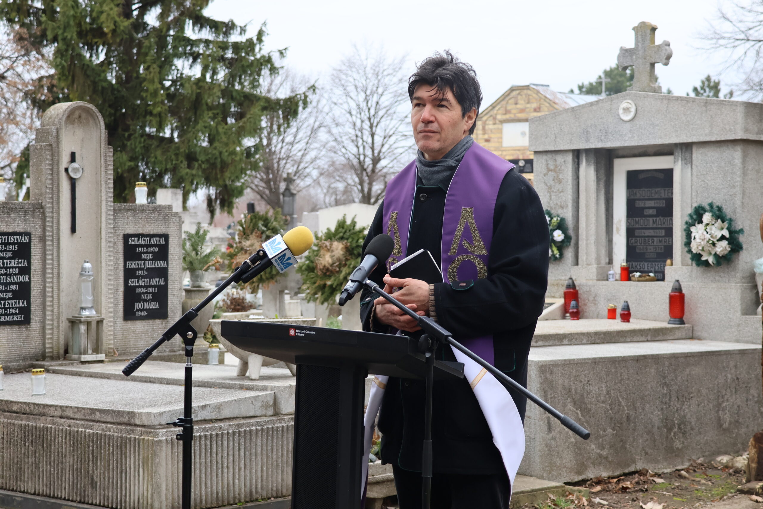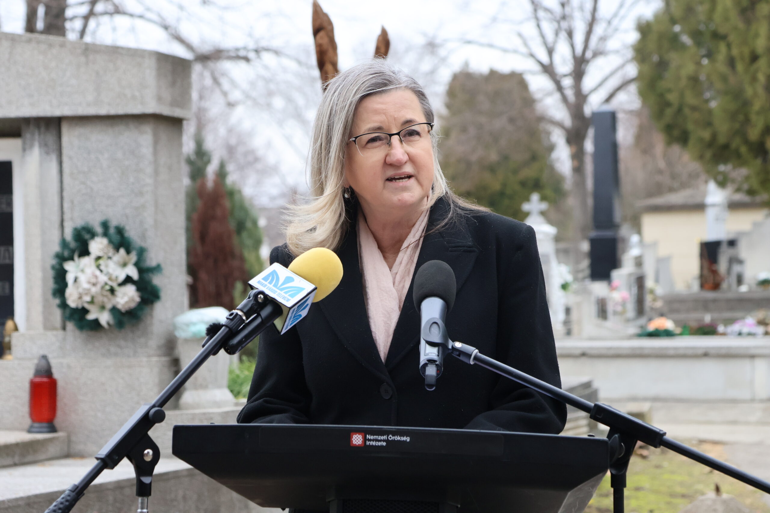 Farkas Éva Erzsébet polgármester beszédében úgy fogalmazott: a temető csendje nem üresség, hanem megtartó erő. Itt nyugszanak azok a lelkipásztorok, tanítók, orvosok, közéleti személyiségek és egyszerű polgárok, akik munkájukkal formálták a várost. Külön kiemelte többek között Könyves-Kolonics Józsefet, Csepregi Imre plébánost, dr. Nikolszky Jenőt, Török Józsefet és dr. Tóth Ferenc helytörténészt. A beszédek után a vármegyei kormányhivatal főigazgatója, Dr. Molnár Csaba is szólt a jelenlévőkhöz, majd Pálfai Zoltán római katolikus plébános megáldotta a parcellakövet. Az ünnepség végén hivatalosan is felavatták az információs jelzőkövet. A QR-kód segítségével mostantól bárki könnyedén megismerheti az itt nyugvó személyek életútját, a sírhelyek pontos elhelyezkedését és történelmi jelentőségét.