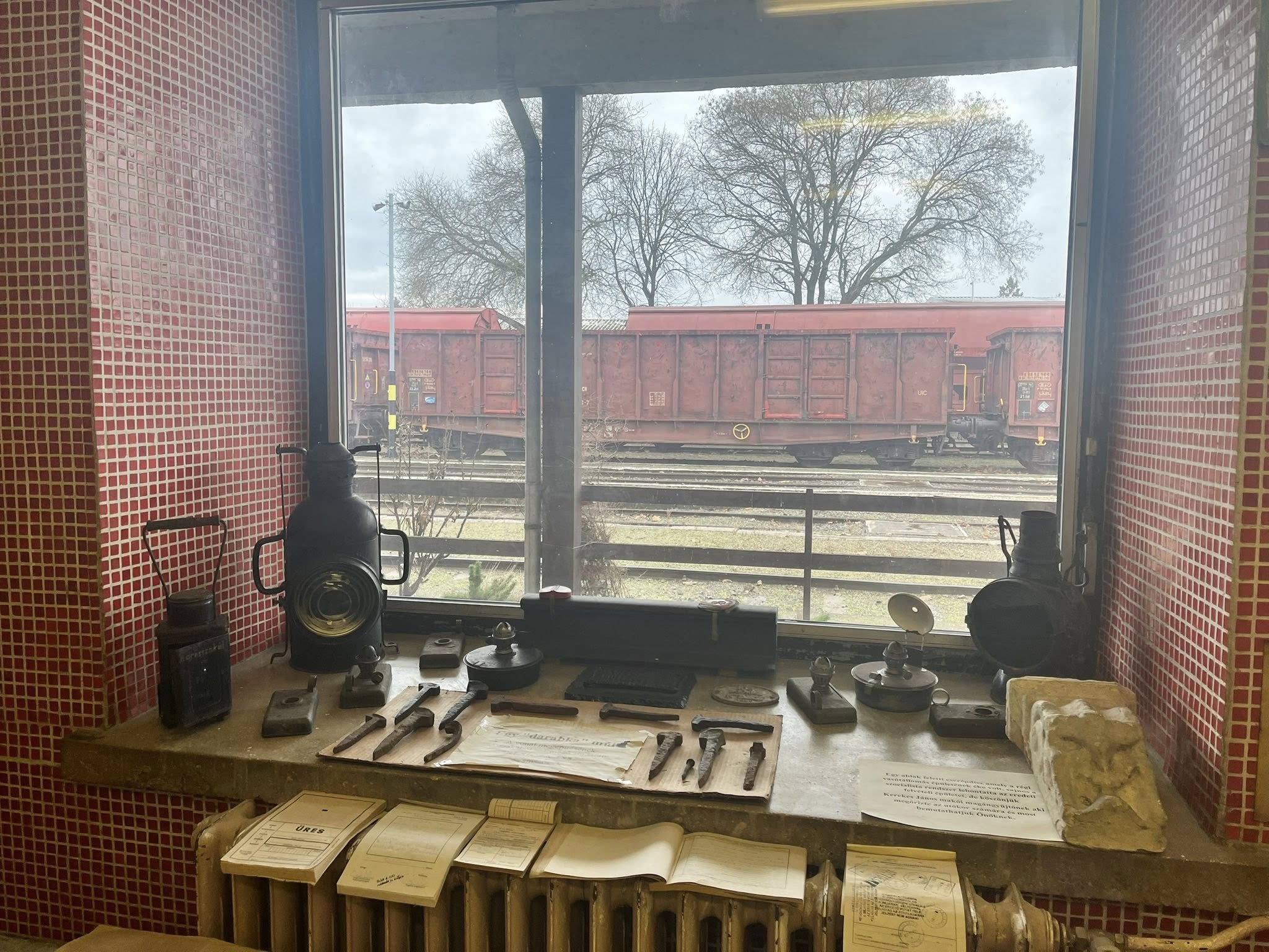 A régi relikviák sorában megtalálható például egy sínszál 1882-ből, ami a harmadik vágányban volt annak idején behelyezve. Szintén van még egy tárgy 1882-ből: egy darab a régi állomásépületből. Emellett van itt egy állomásfőnöki ingaóra is, amely a monarchia idejéből származik, és mai napig üzemel.