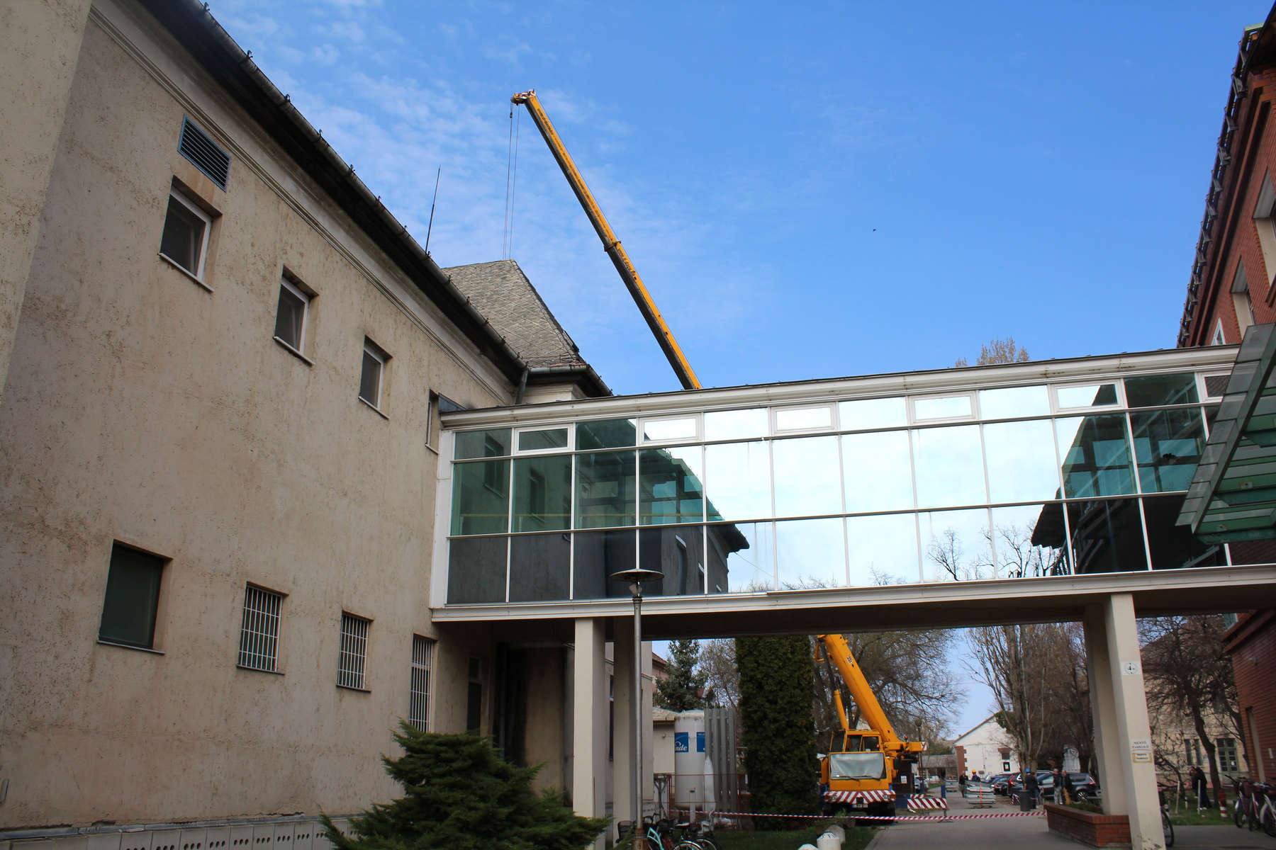 Csütörtök délelőtt egy hatalmas daru kezdett el dolgozni a makói kórházban. A Hódmezővásárhelyi – Makói Egészségügyi Ellátó Központ Makói Tagintézményében jelentős műszaki korszerűsítés valósul meg, amely hosszú távon még biztonságosabb és megbízhatóbb működést biztosít a műtéti ellátás számára.