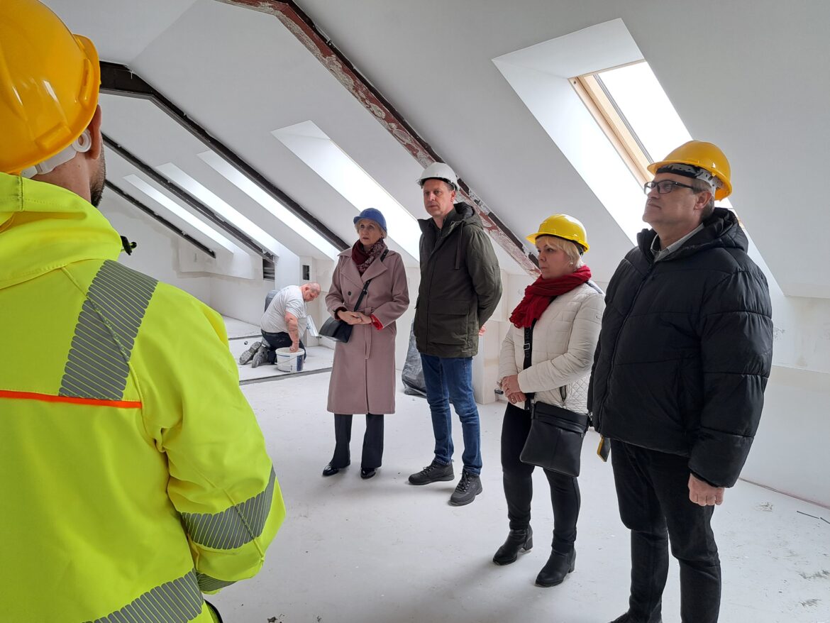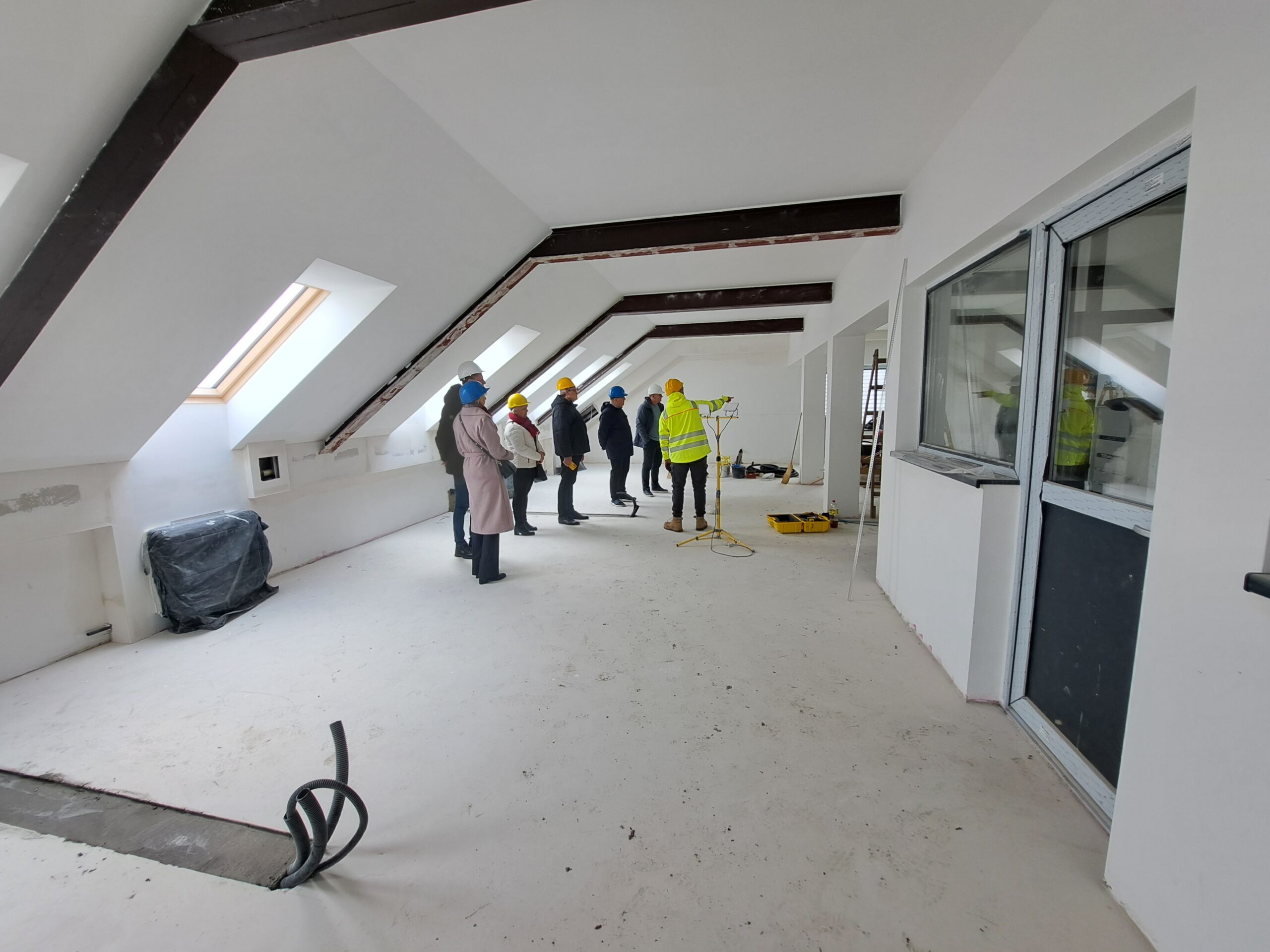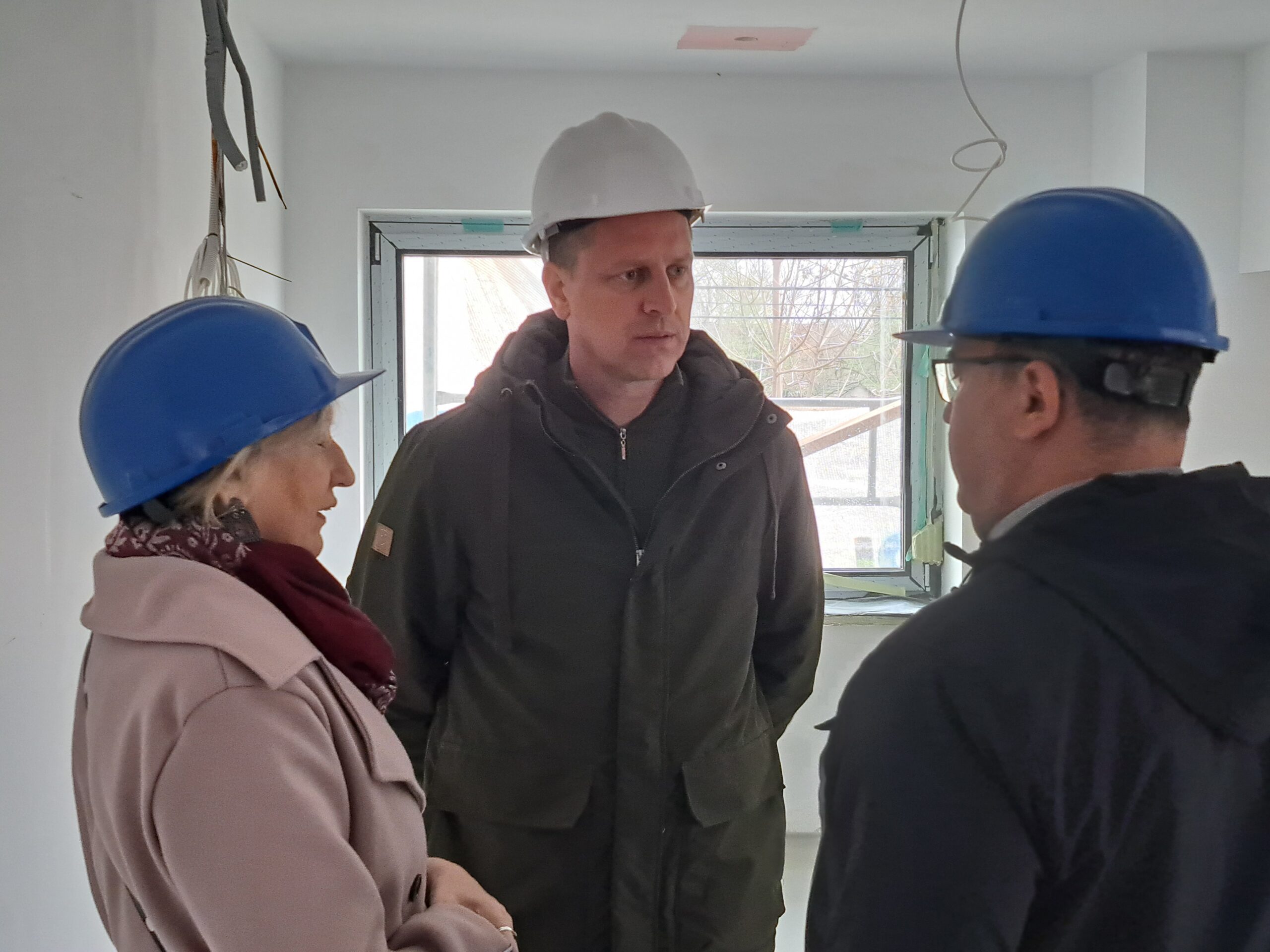 Péntek délelőtt ismét többen is megnézték a HSZC Bajza utcai, készülőben lévő épületét. Utoljára két hónapja tartottak bejárást, azóta pedig rengeteg változáson ment keresztül az intézmény kívül és belül is. A konkrétumokat Kardos Dániel osztotta meg lapunkkal. Az építésvezető elmondta: felszerelték a napelemrendszert, elkezdtek burkolni, a festési munkálatok is már javában folynak, készülnek a szerelvényezések, lámpákat és korlátokat építenek, a külső homlokzatot szigetelik, bádogoznak. Hozzátette: víz már van, és bár egyelőre az áramot külön rendszeren kapják a szolgáltatótól, két héten belül már főágról fog érkezni, így az is lesz. Az épületben megközelítőleg összesen 30 kilométernyi kábel lesz beépítve a felújítási munkálatok végére.