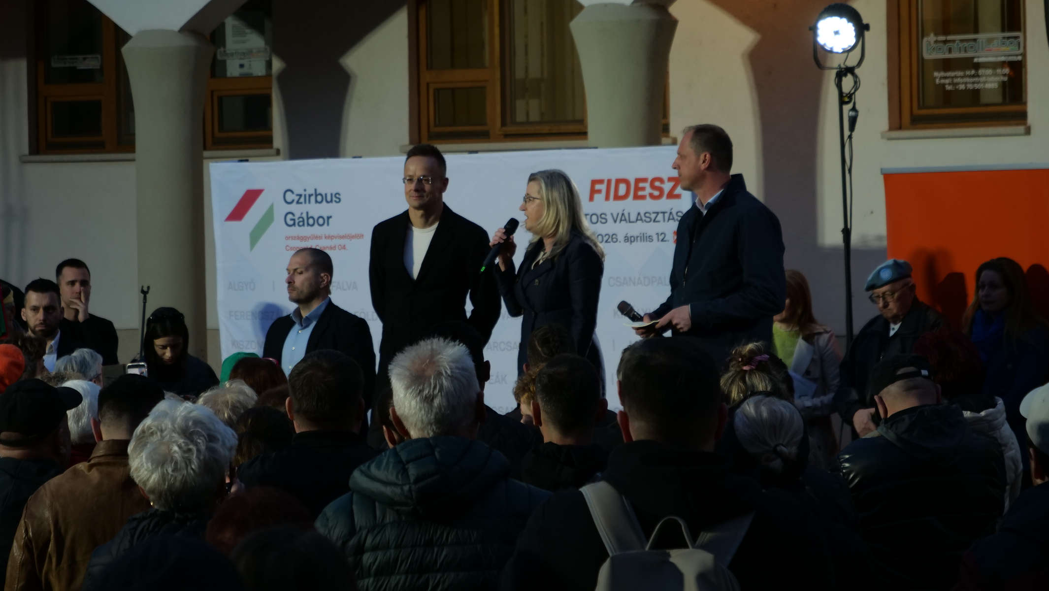 Sokan érkeztek a Makoveczt térre, ahol elsőként Farkas Éva Erzsébet szólította meg az összegyűlteket. A polgármester kiemelte: az elmúlt 11 év többek között az építkezésről, fejlődésről szólt, amely a közösséget és a várost is érintette. Rengeteg beruházás ment végbe és több olyan van, ami még jelenleg is folyamatban van. A városvezető hangsúlyozta: mindezek közös erővel valósultak és valósulnak meg, a Makón és a térségben élőknek, az önkormányzatnak, a Csongrád-Csanád Vármegyei Közgyűlésnek és a kormánynak köszönhetően. Véleménye szerint pedig április 12-én az is a tét, hogy hasonló úton tudjon haladni a település. Azonban nem csak helyi szinten, hanem országosan is fontos a béka, a biztonság és a kiszámíthatóság érdekében, hogy ki nyeri a választást.